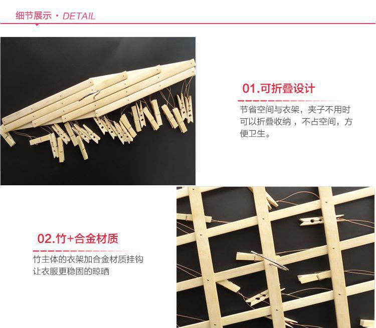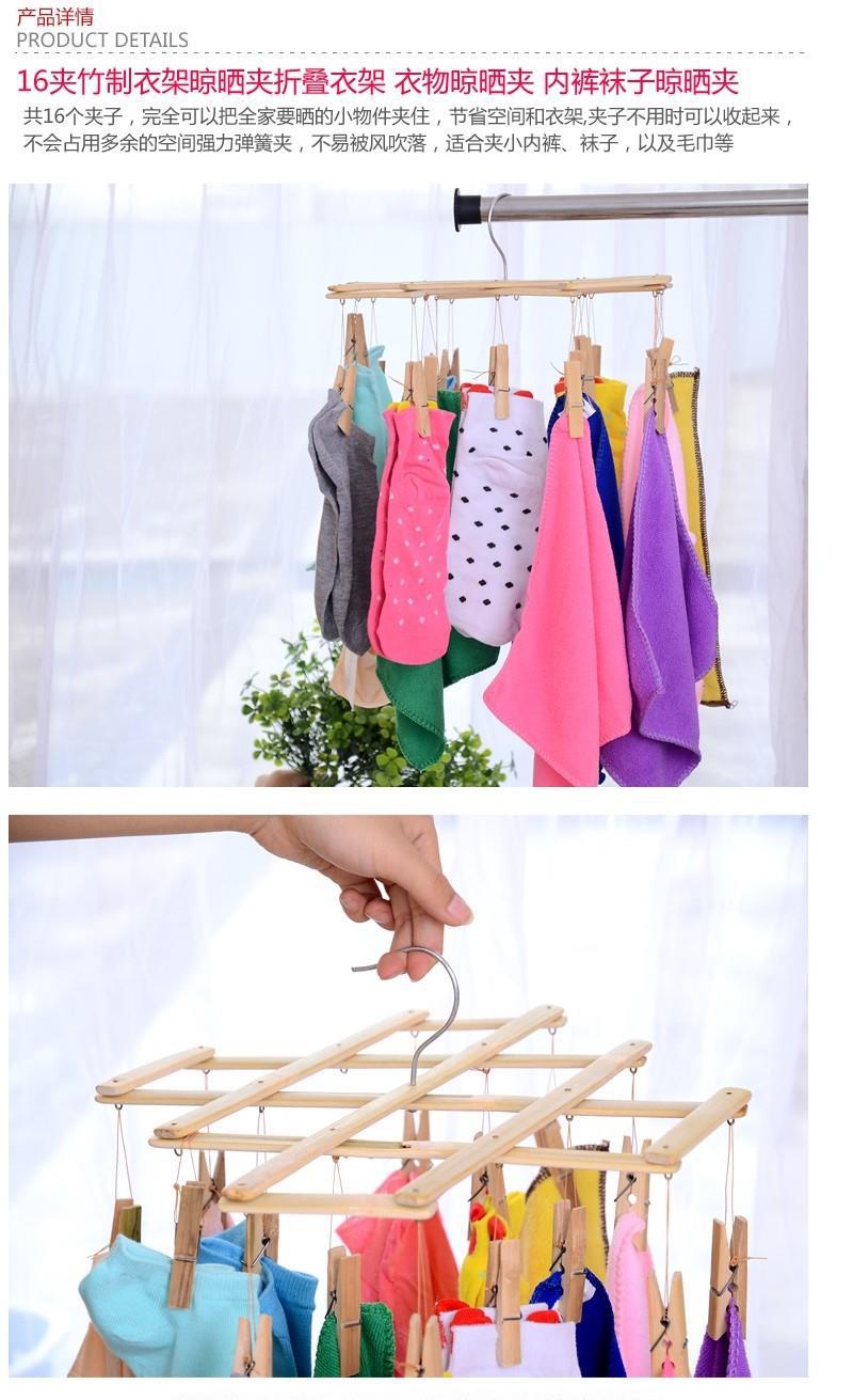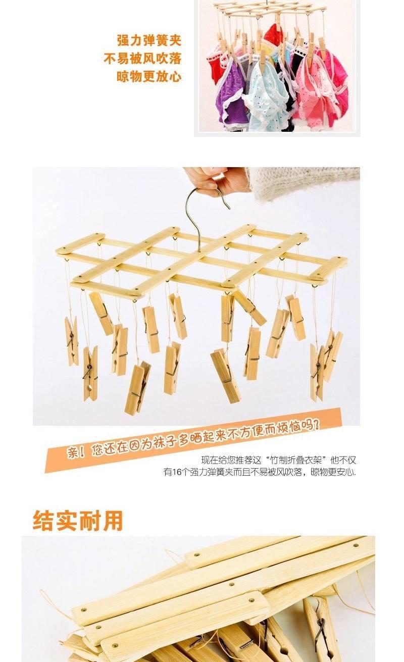 竹夹子衣架用多功能可折叠晾衣多夹子竹制晾晒裤架裤夹晒袜子家用