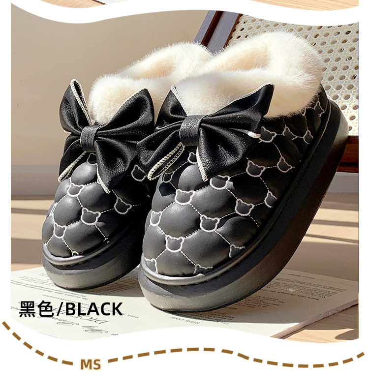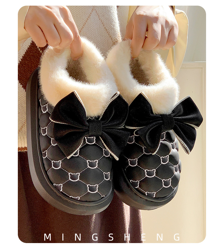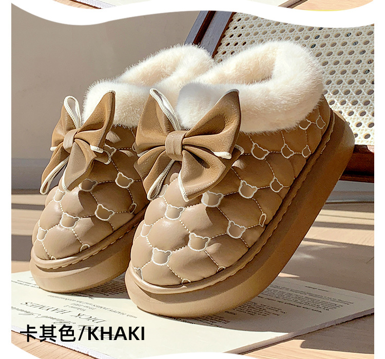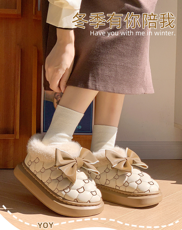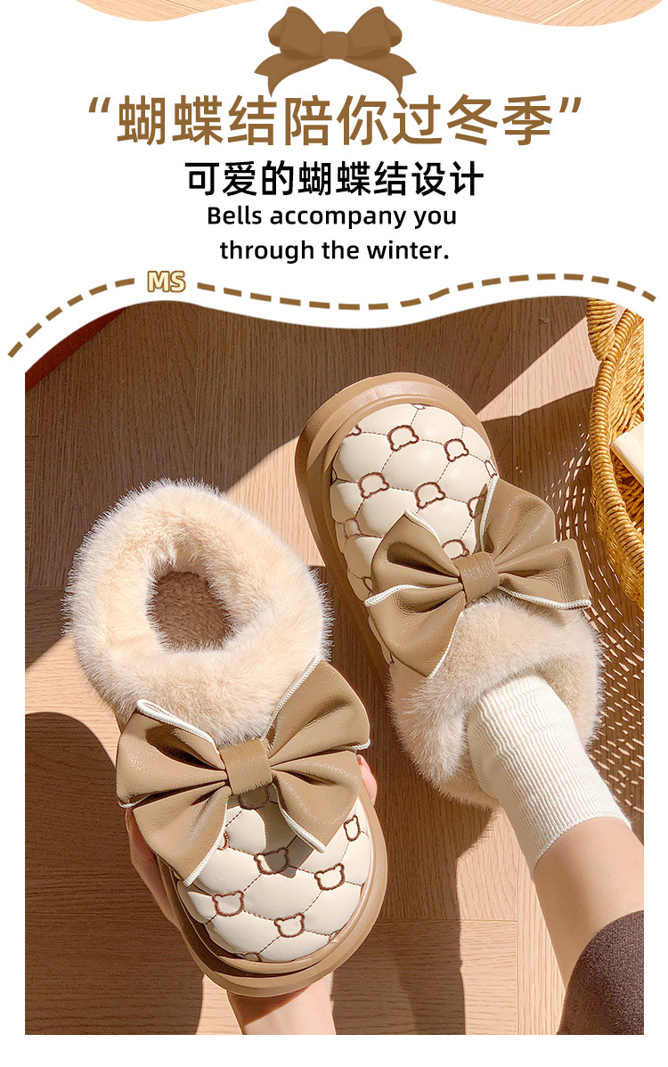 高颜值蝴蝶结防水棉鞋女包跟冬季室内居家加绒防滑棉拖鞋外穿保暖