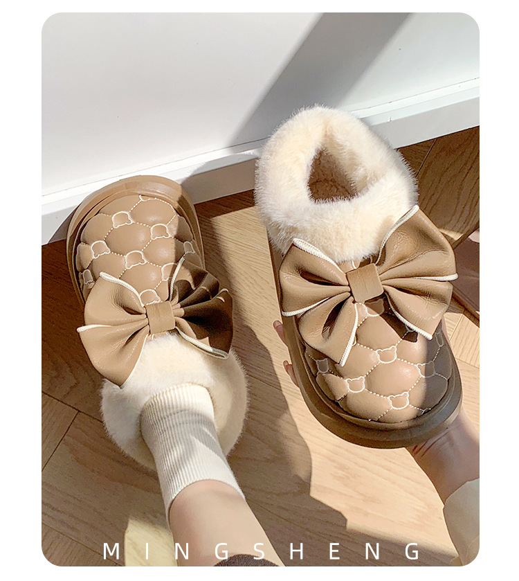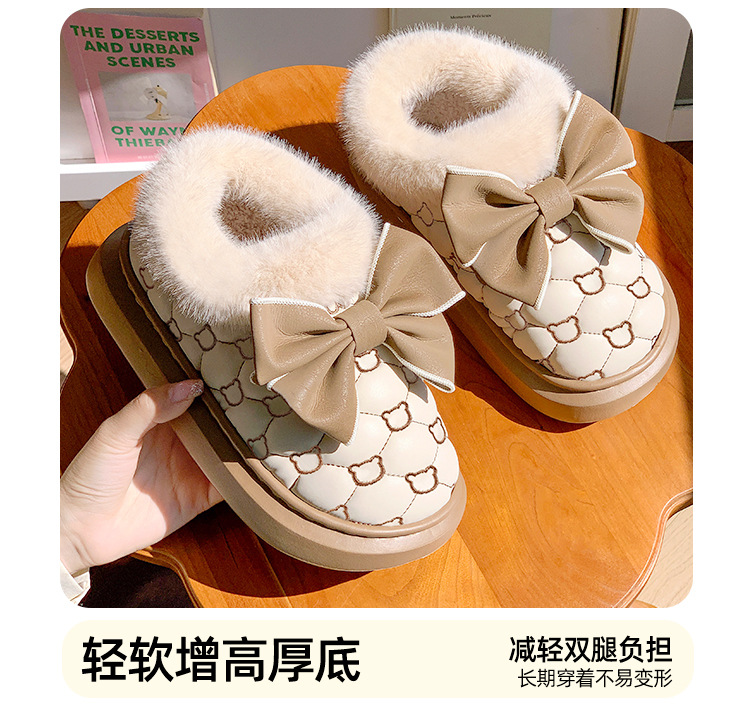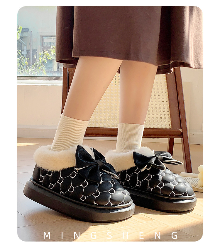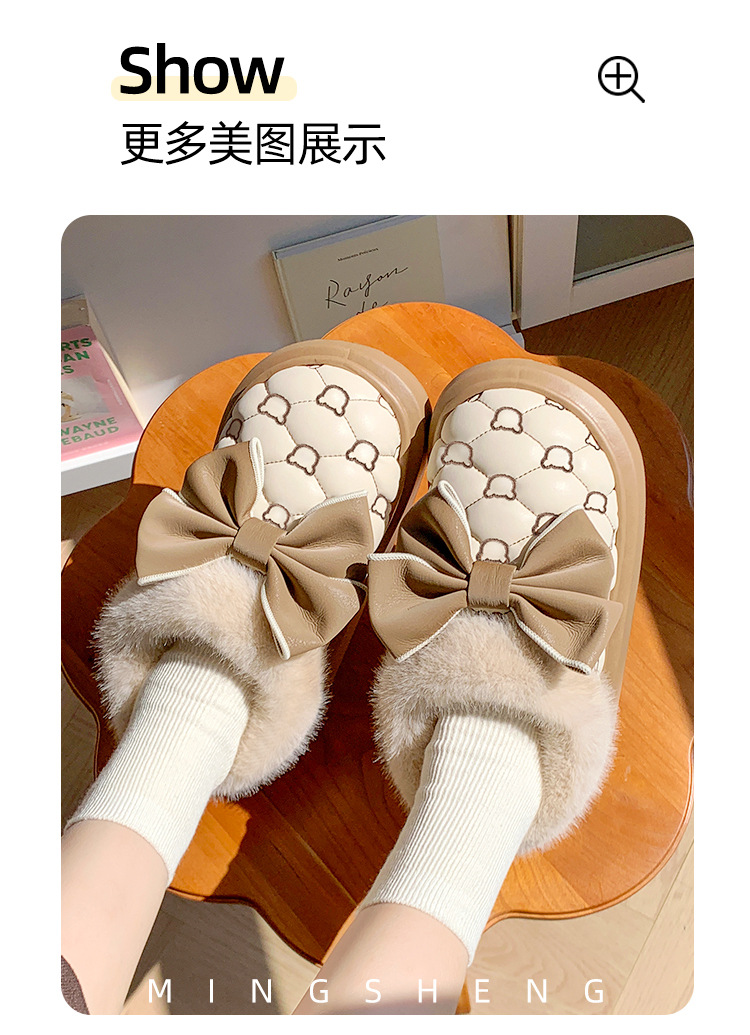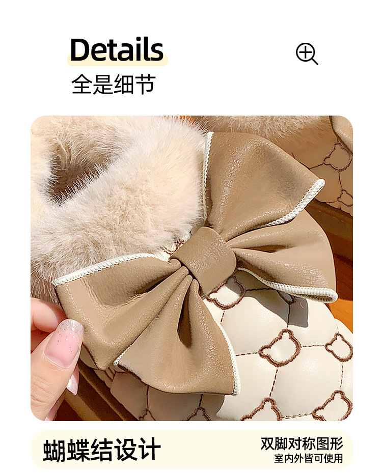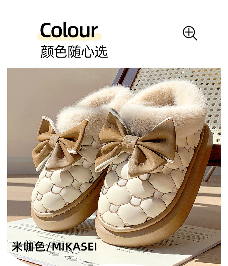 高颜值蝴蝶结防水棉鞋女包跟冬季室内居家加绒防滑棉拖鞋外穿保暖