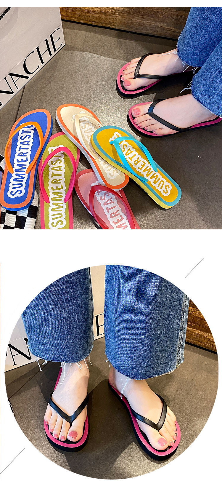 人字拖女夏夹脚海边凉拖鞋时尚外穿学生防滑网红可爱韩版个性沙滩