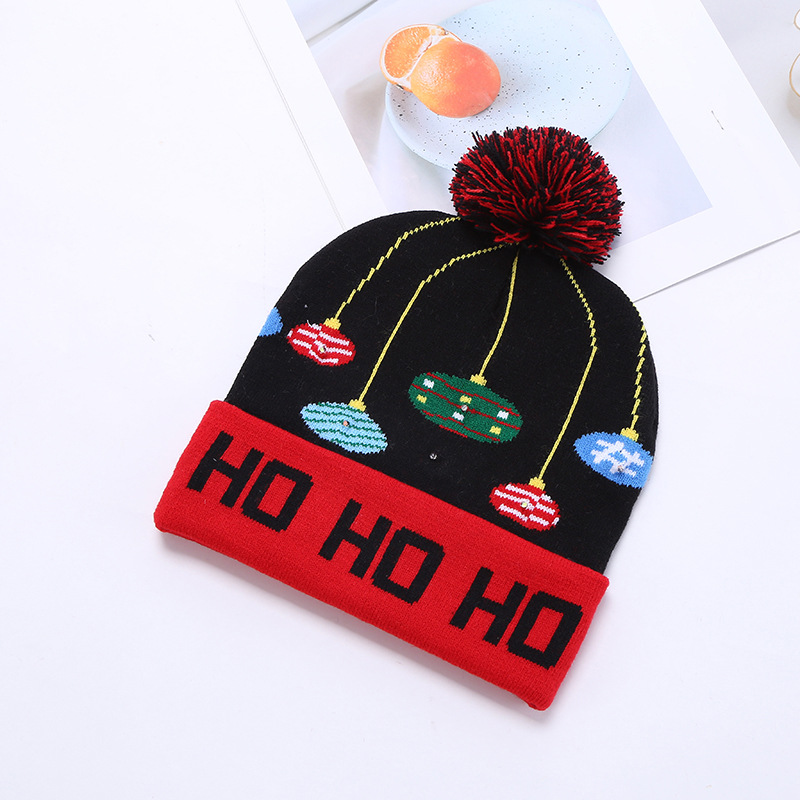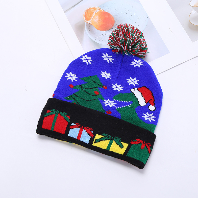跨境针织帽新款圣诞节led彩灯派对毛线针织帽圣诞老人帽现货批发