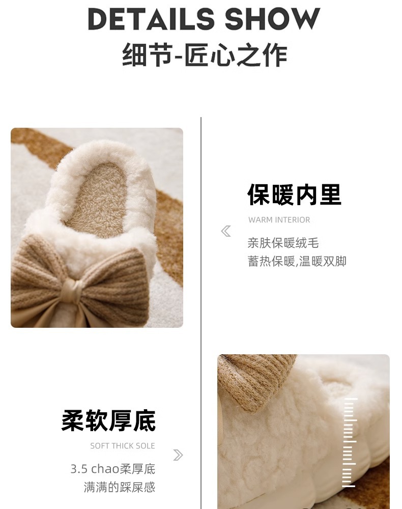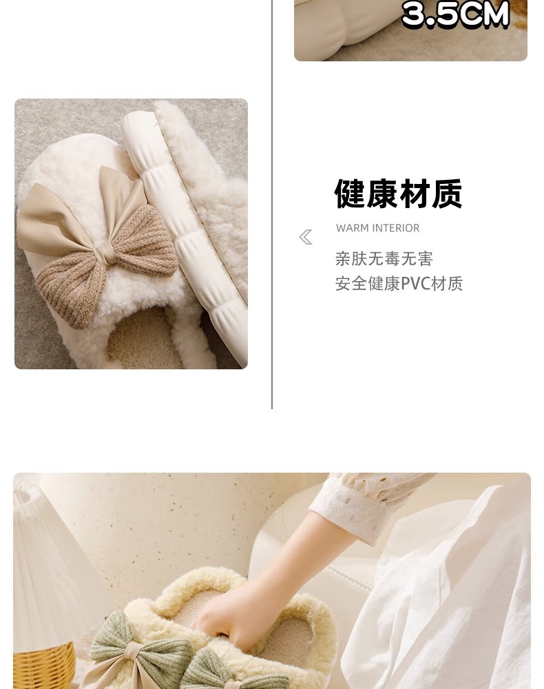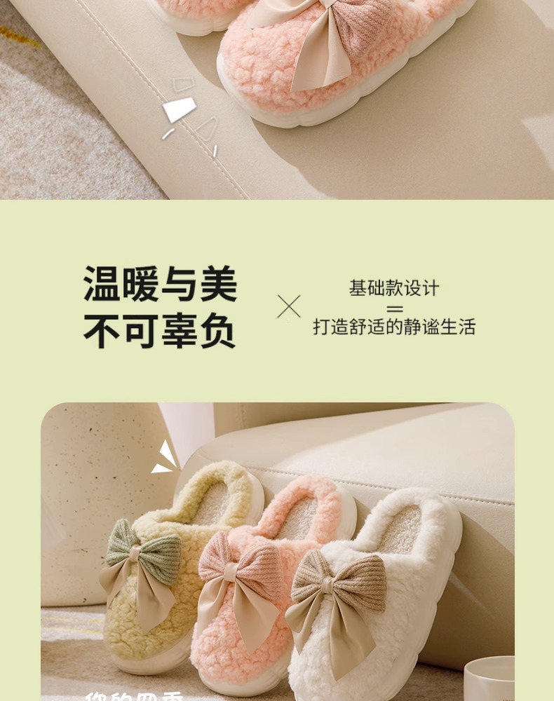 蝴蝶结棉拖鞋女士冬季室内家居2023新款棉拖秋冬款厚底保暖月子鞋