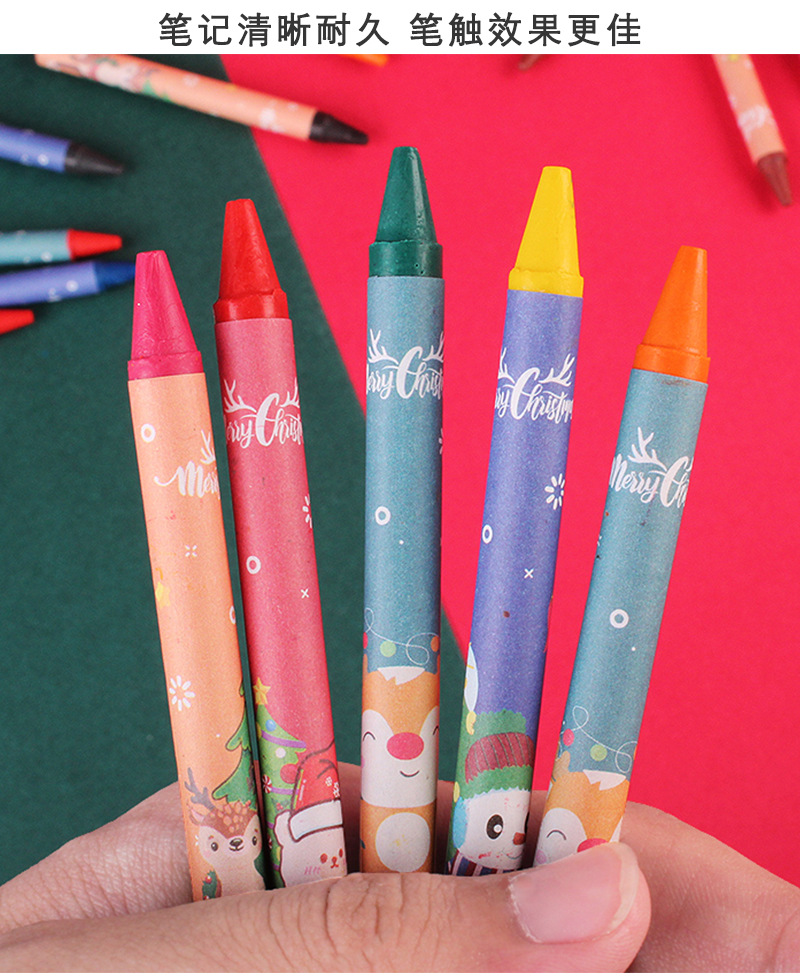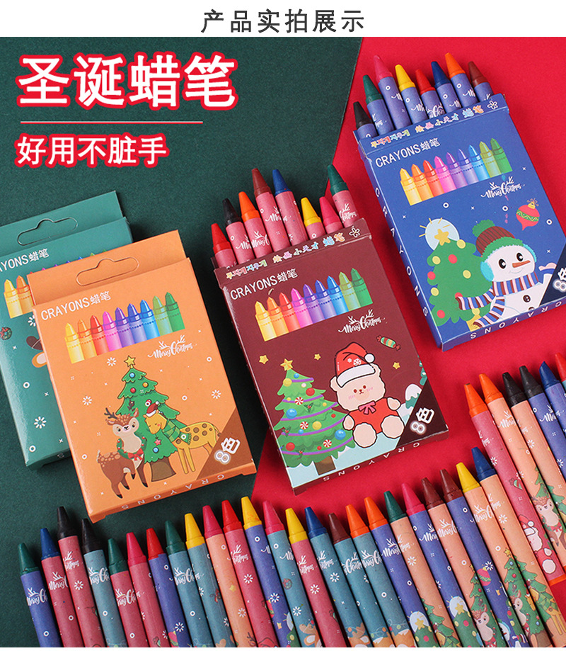 卡通圣诞8色蜡笔套装填色涂鸦美术画笔小学生绘画套装圣诞节礼物