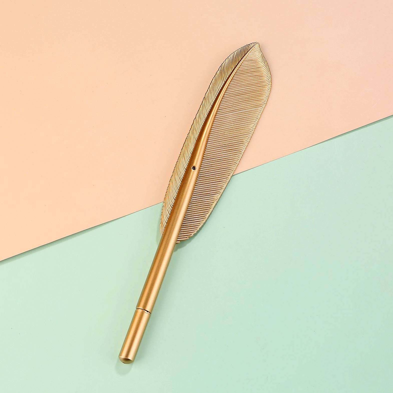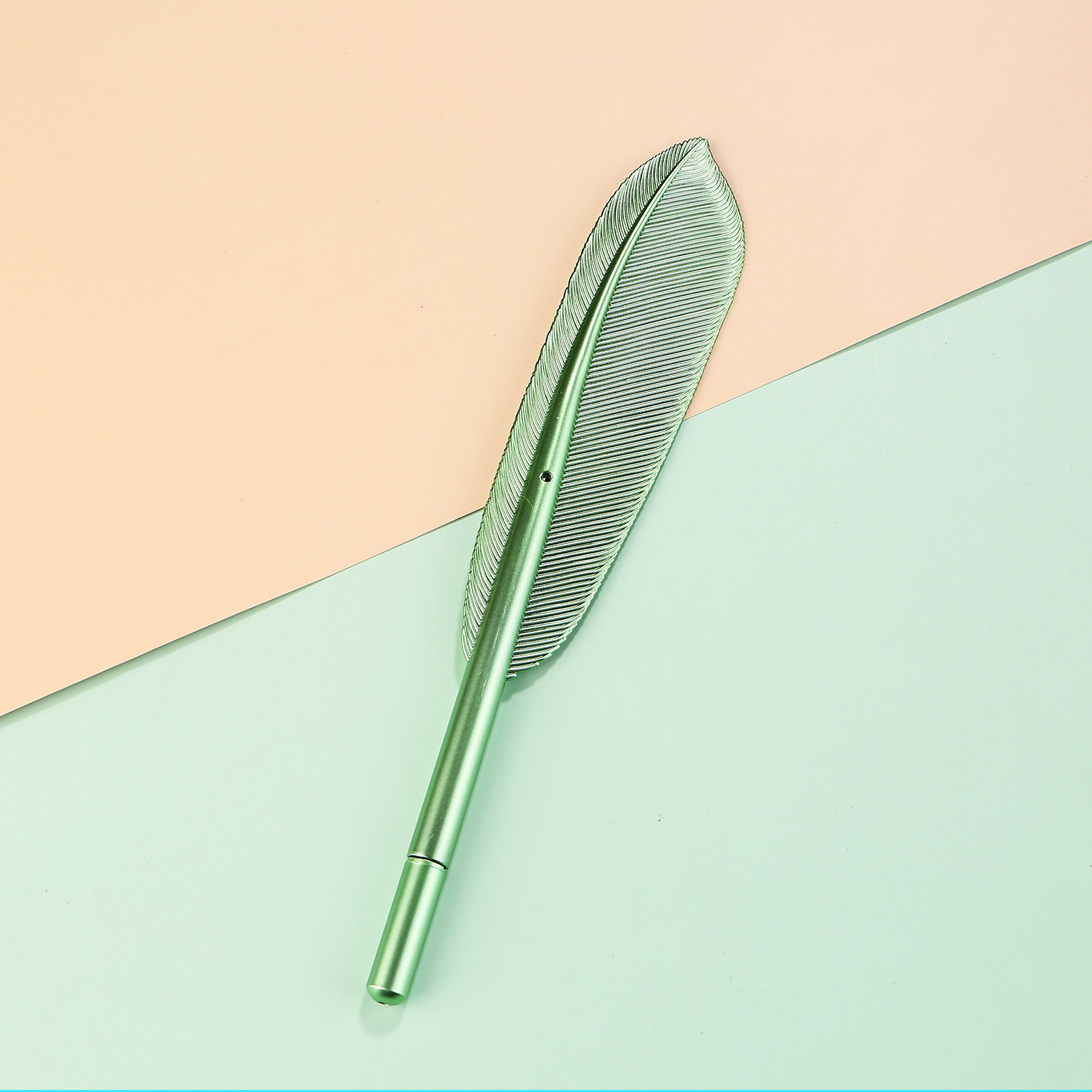 创意金属羽毛中性笔0.5针管黑色圣诞水性笔学生办公文具礼品批发
