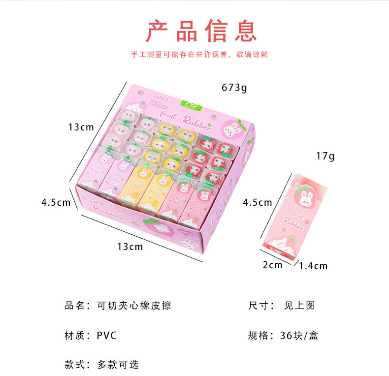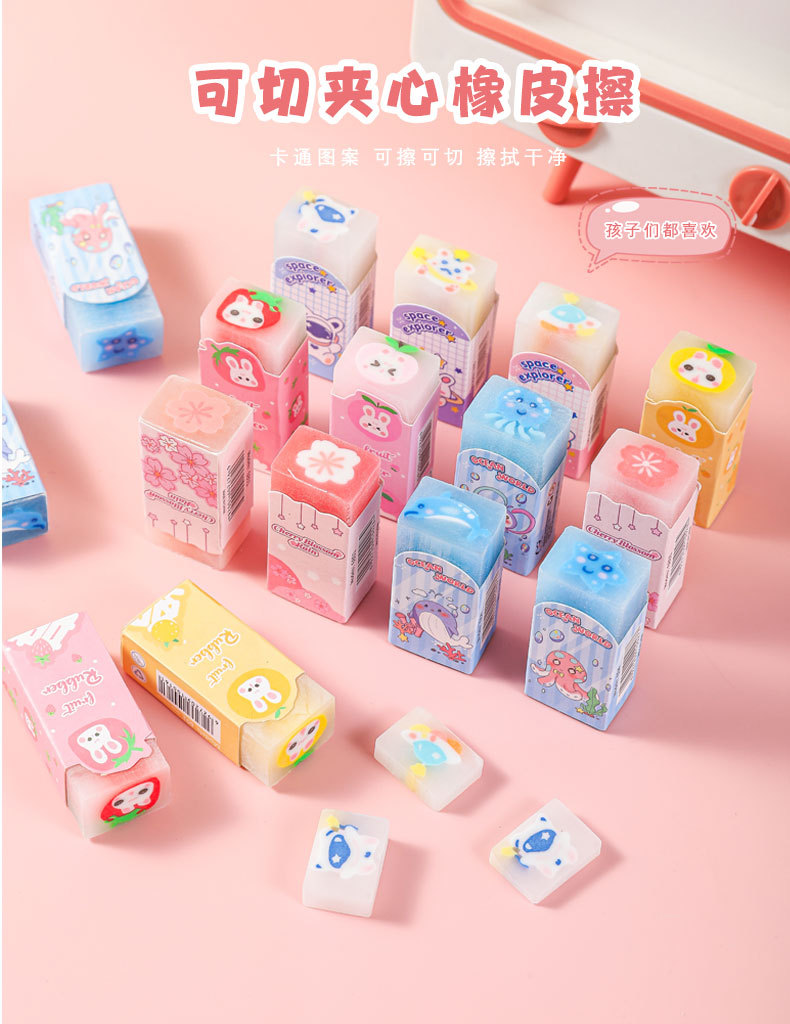 创意卡通夹心橡皮擦小学生少屑绘画可切铅笔橡皮儿童文具礼品批发