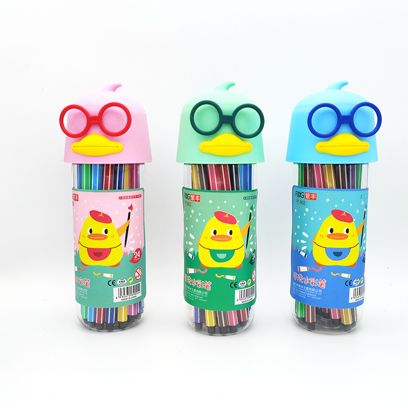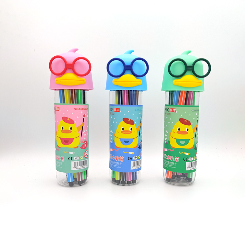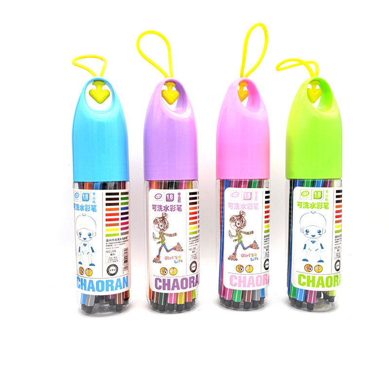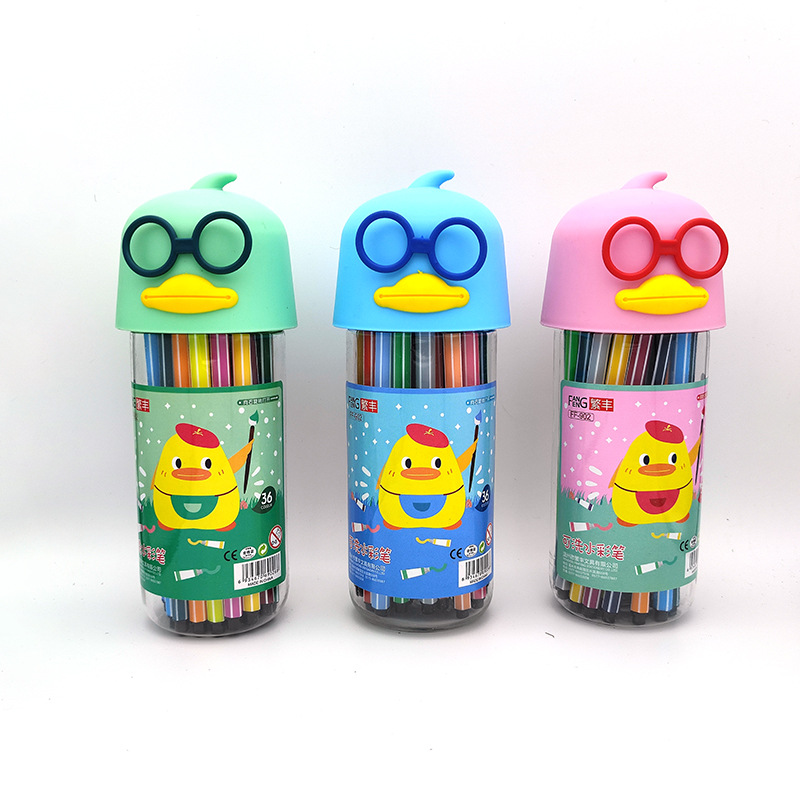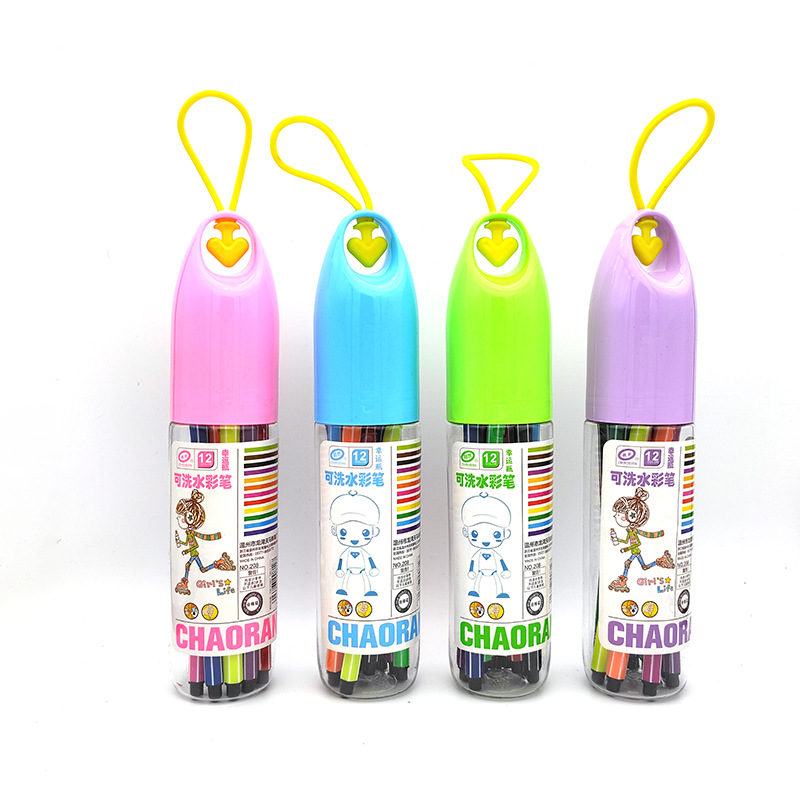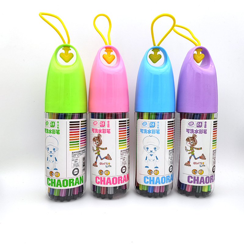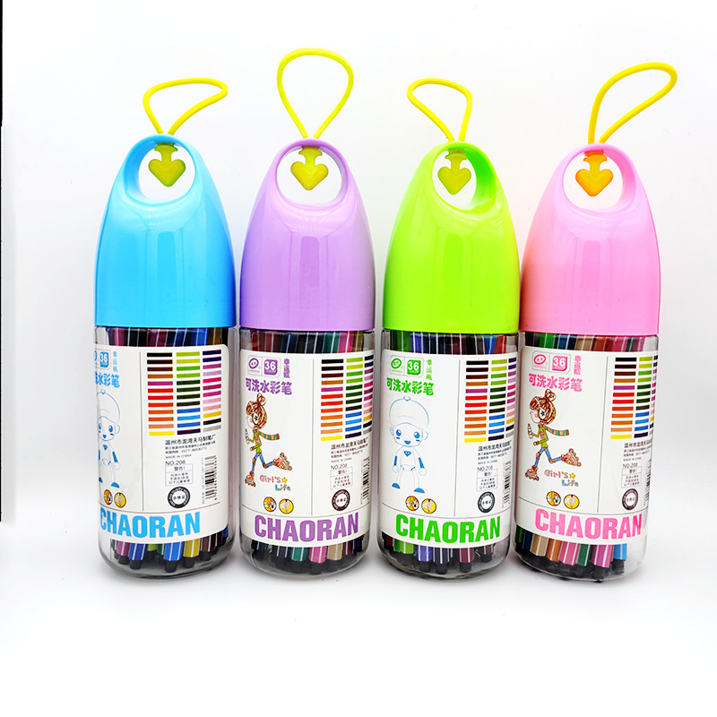 新款可水洗水彩笔创意漂流瓶12/24/36色儿童美术画笔套装学生文具