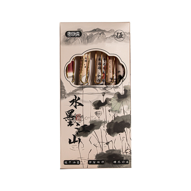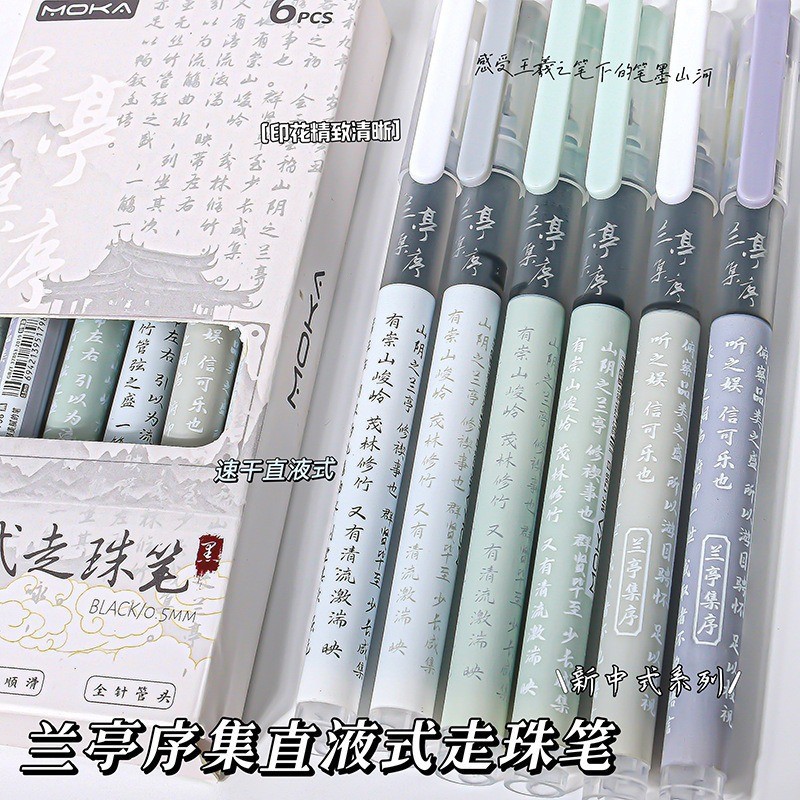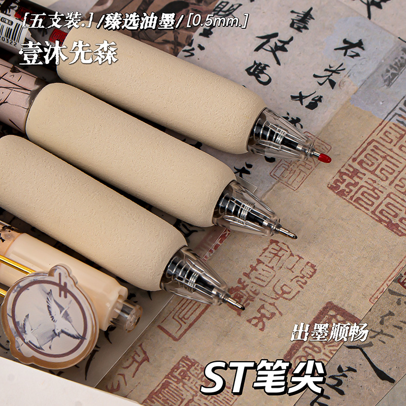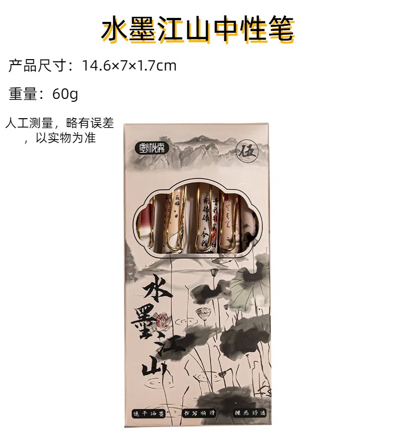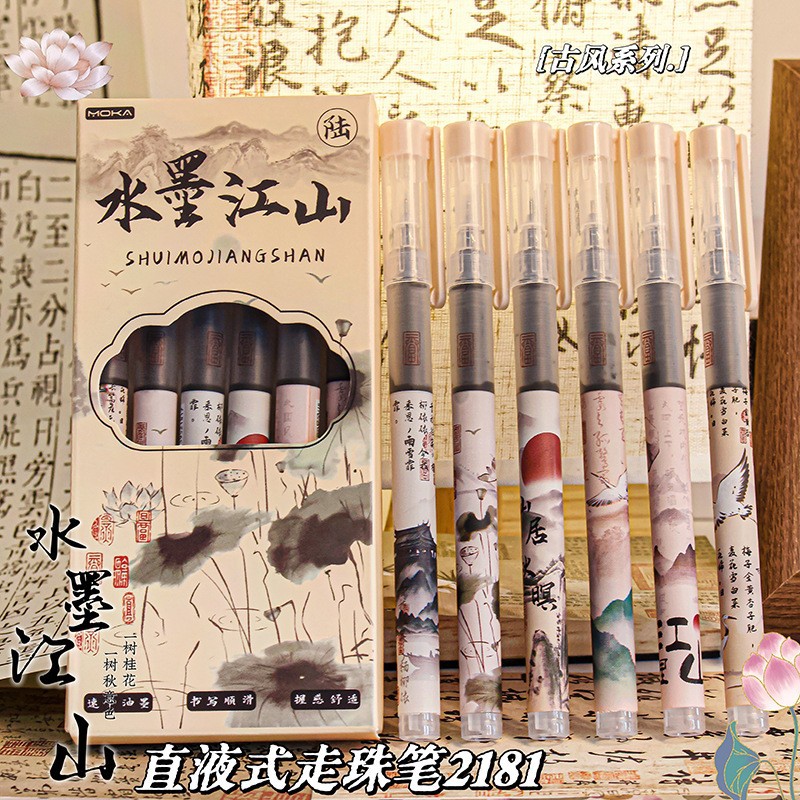 水墨江山按动中性笔软握高颜值国风学生0.5黑色速干按动笔刷题笔