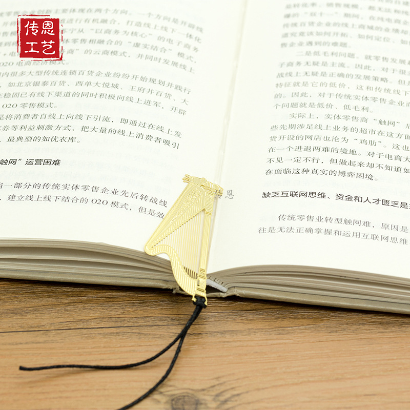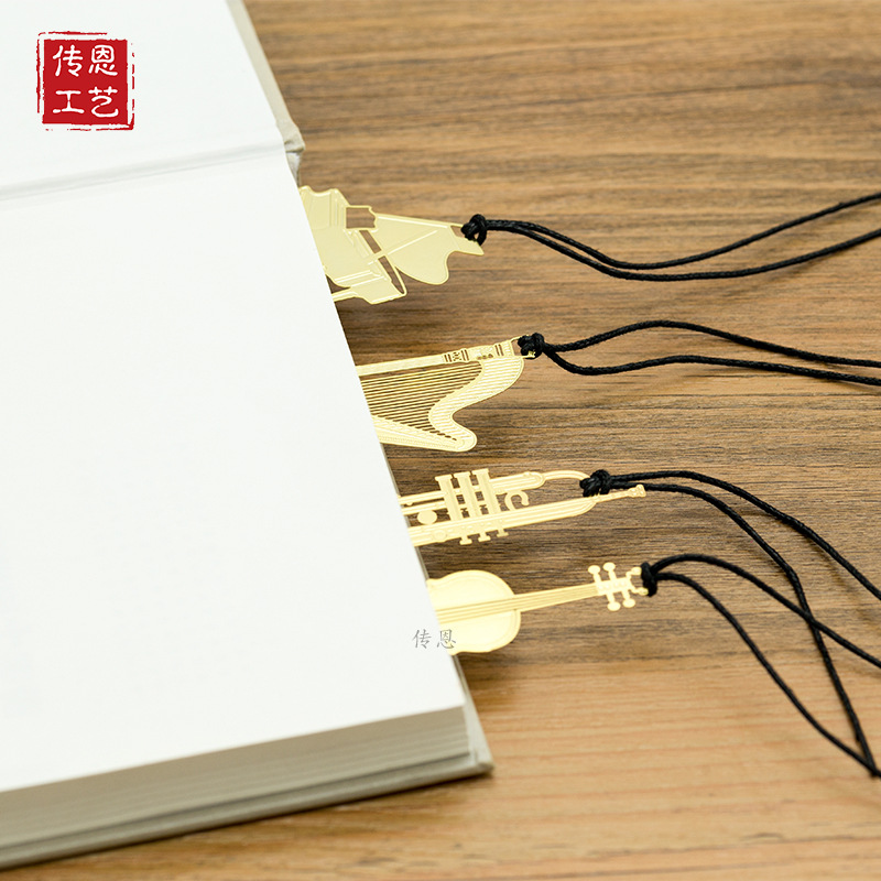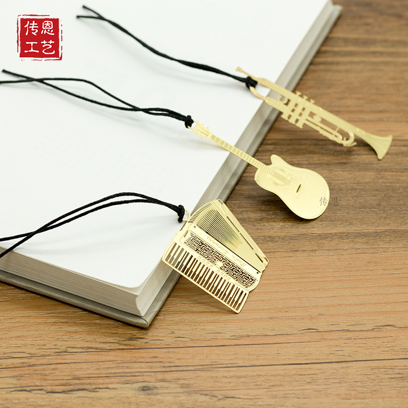 韩版挂绳金属腐蚀书签 迷你创意精美书签 文艺音乐书签黄铜