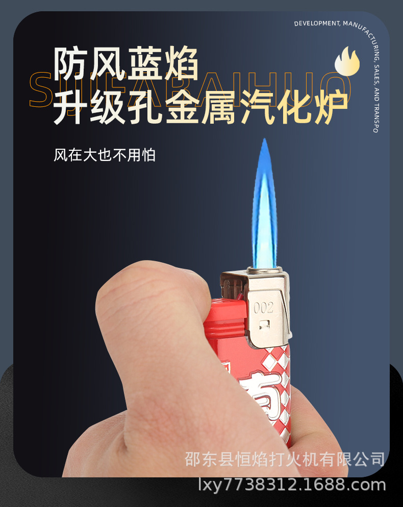 博众002新款宽版大号直冲机 防风打火机 可加气款 耐用 供商超