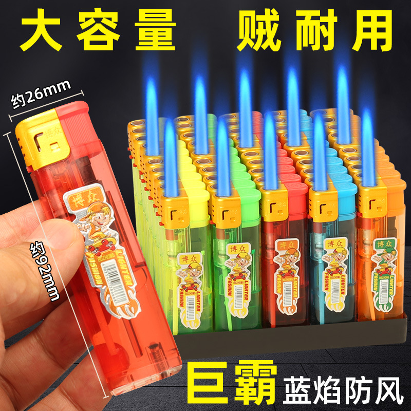厂直销博众加长款 直冲蓝焰透明防风 大号可加气打火机 可印广告
