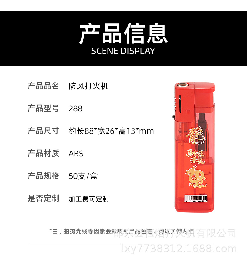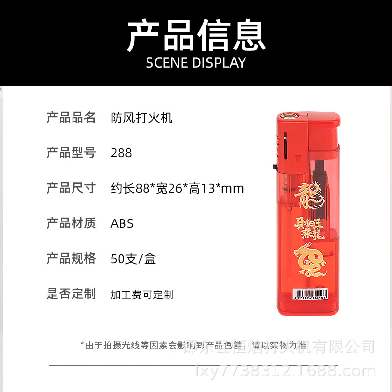 恒图288大容量机皇直冲打火机 透明红可加气3D打印 可加广告 量优