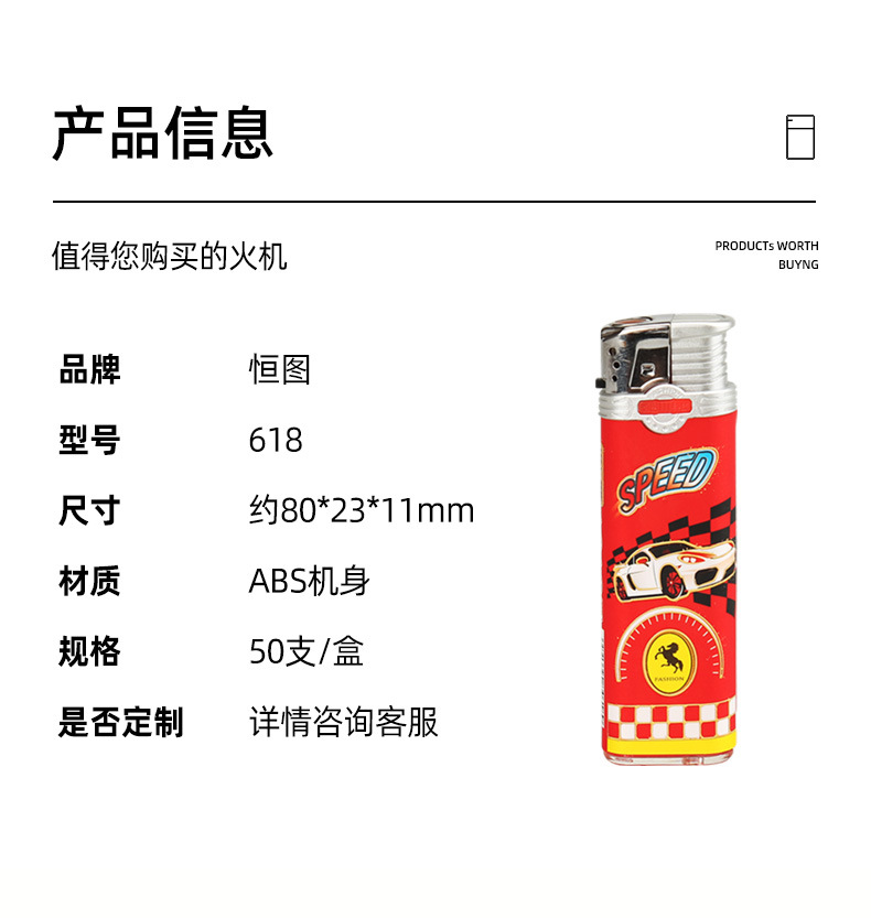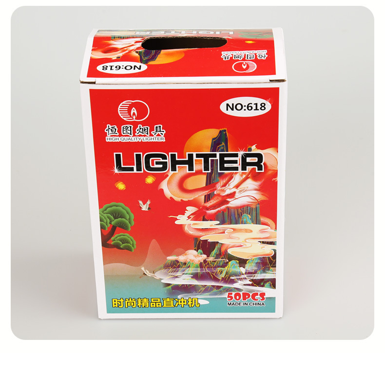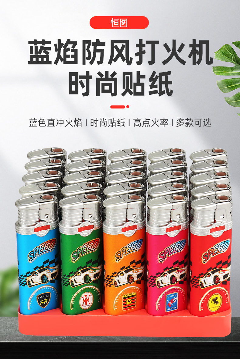 恒图618高档时尚潮流包纸耐高温防风蓝焰打火机 可加气 商超同款