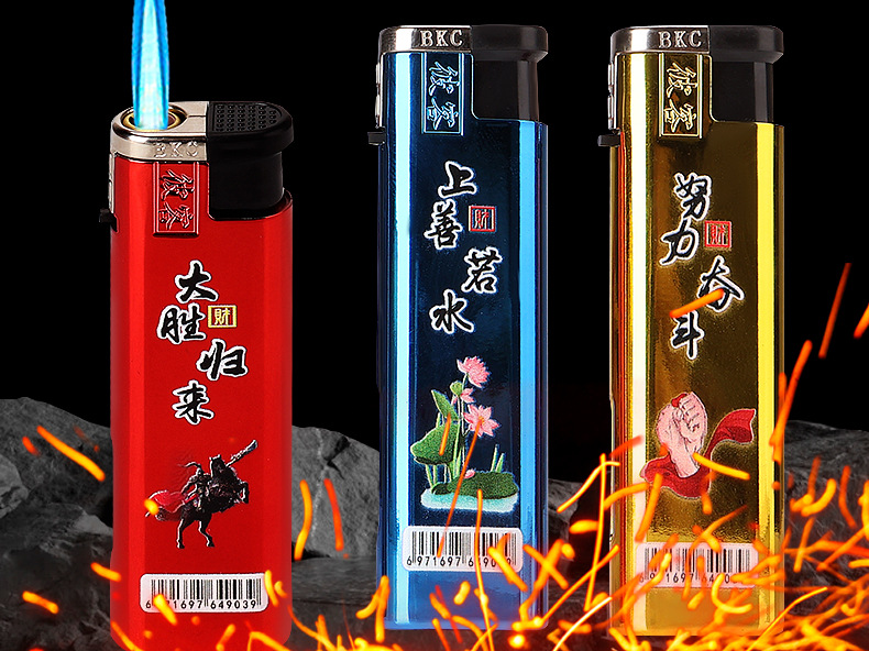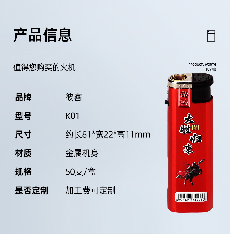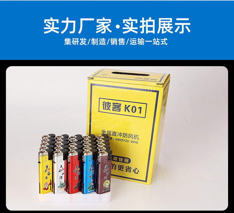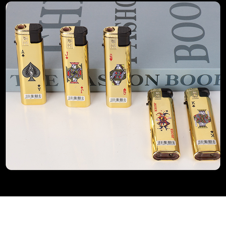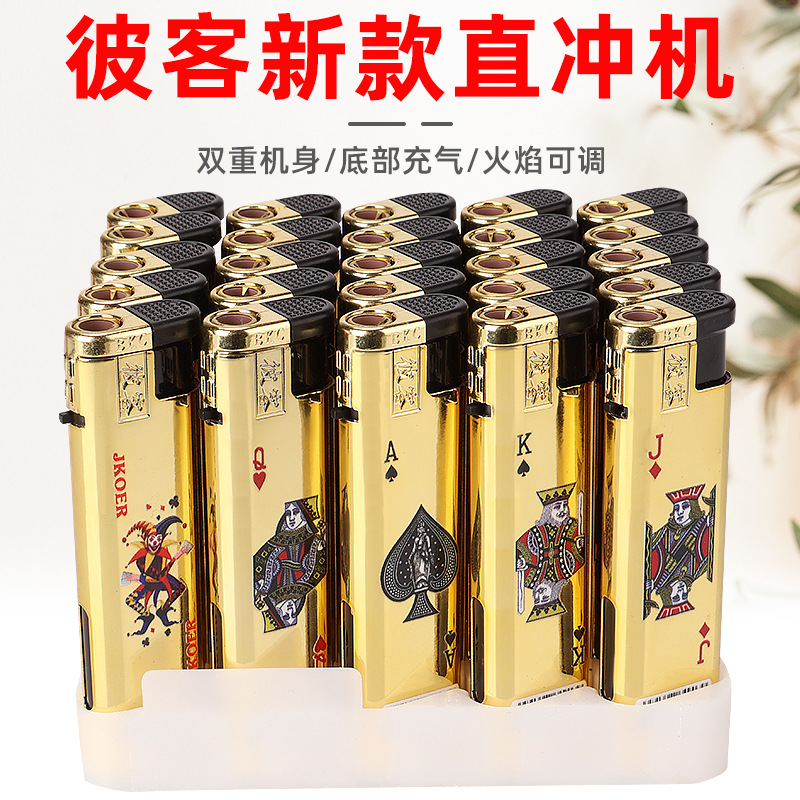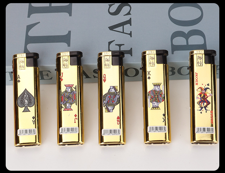 彼客K01金色扑克 五色时尚图 金属防风打火机 蓝焰 出火口耐高温