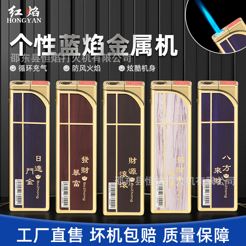 博众A05木纹漆金属防风打火机 蓝焰可加气打火机工厂直销价格优惠