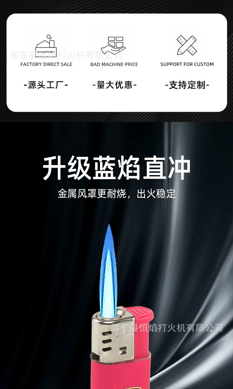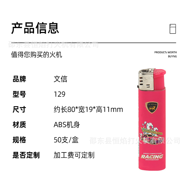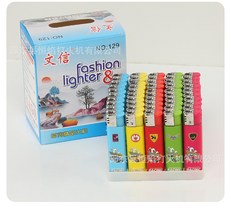 文信129 包纸蓝焰 直充打火机 可加气耐用款 工厂直销 细条款