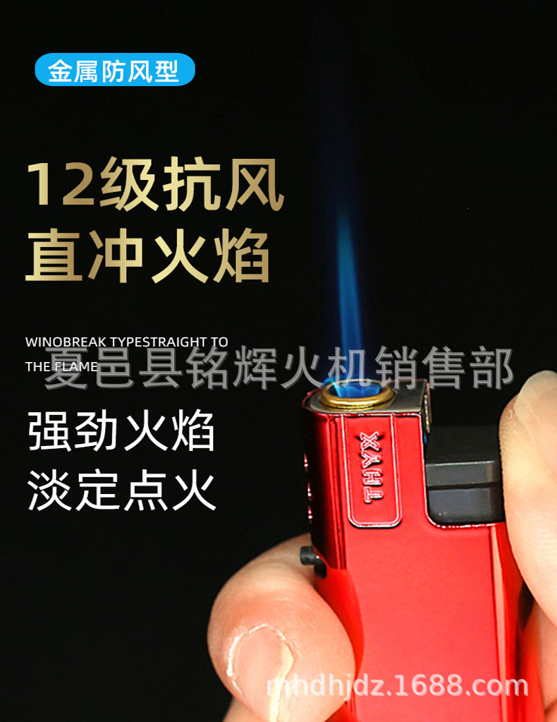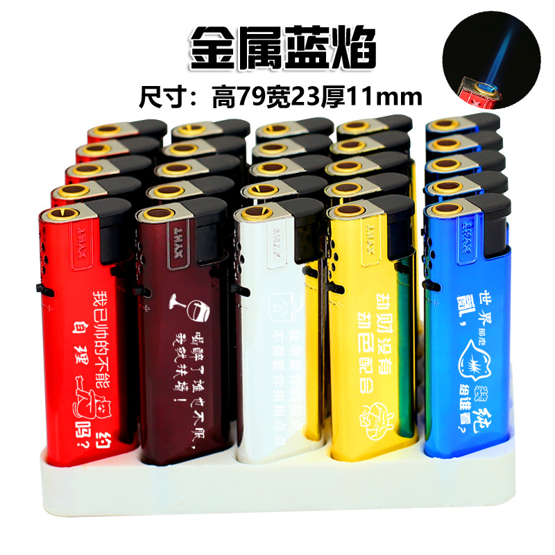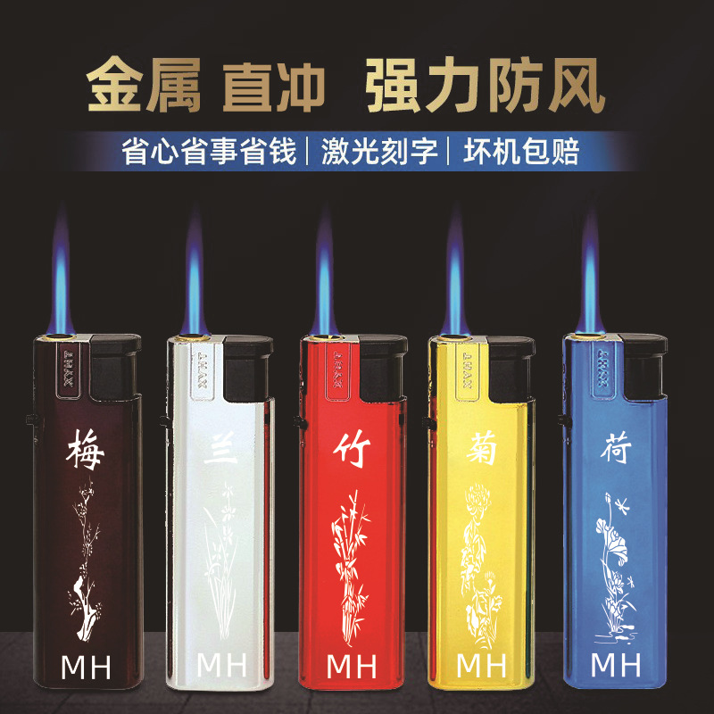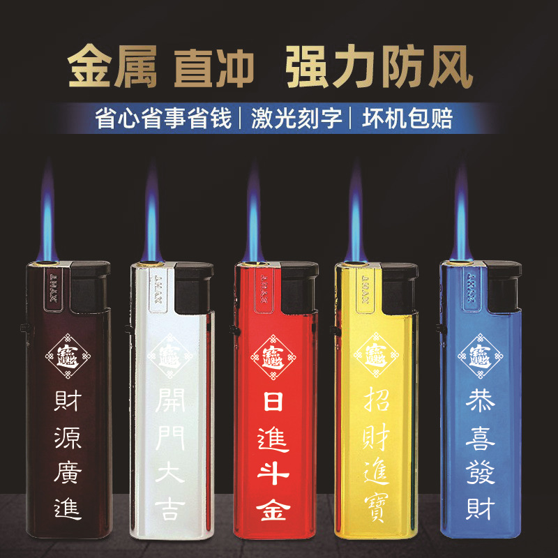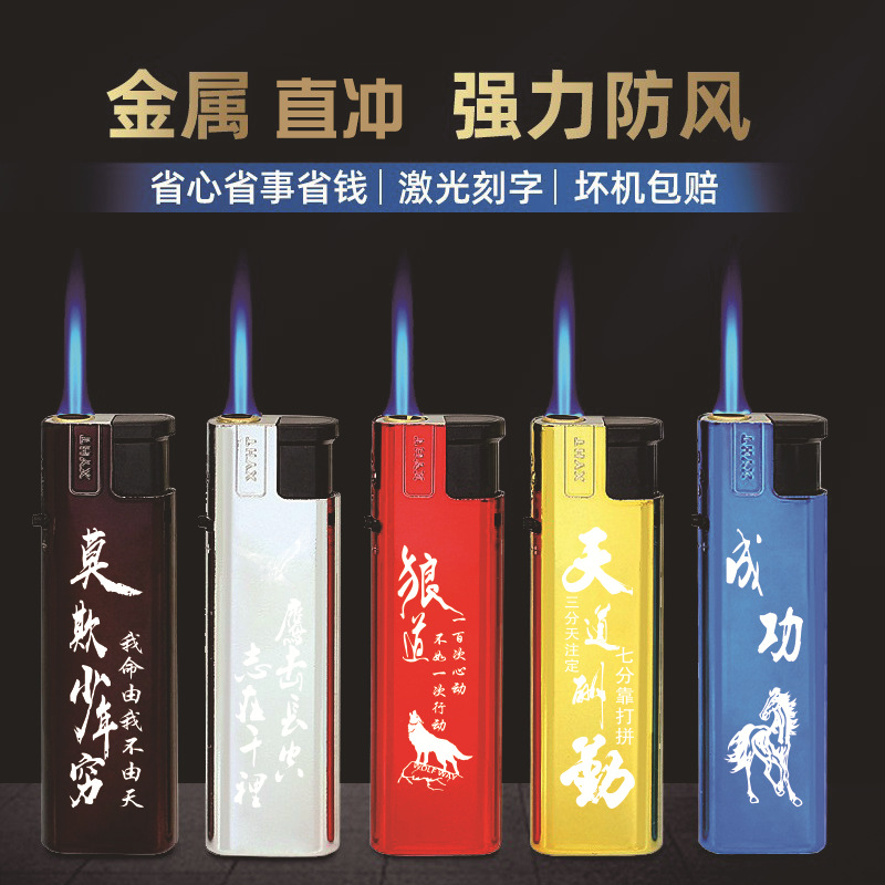 铁壳金属广告防风直冲打火机激光雕刻印字一盒家用可充气蓝焰火机