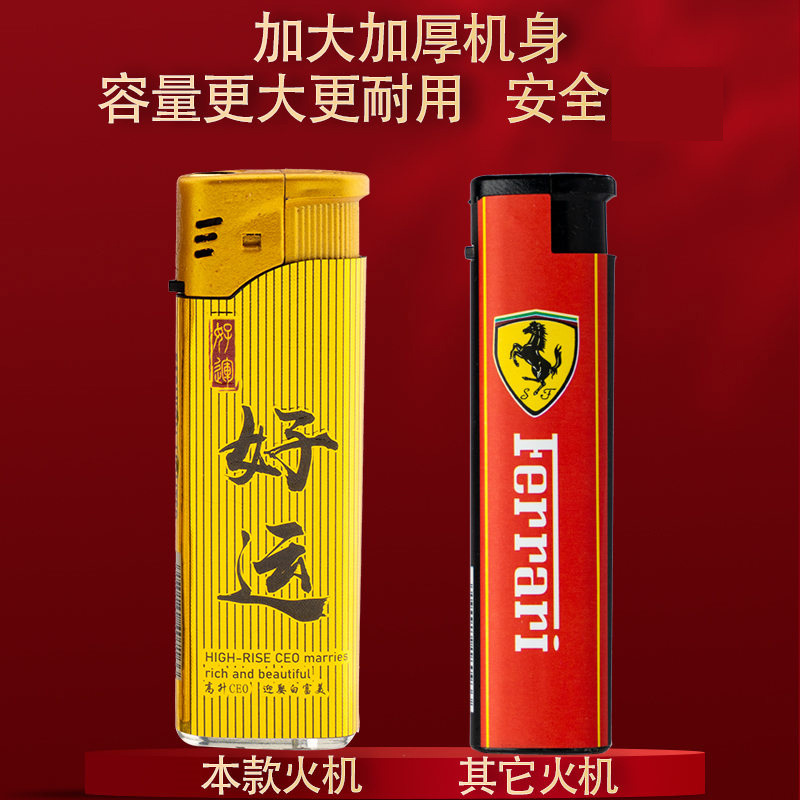 防风包画直冲打火机加大加厚塑料电子蓝色火焰一盒50支家用火机