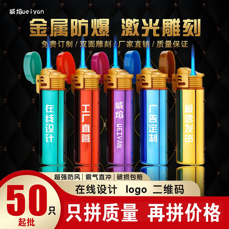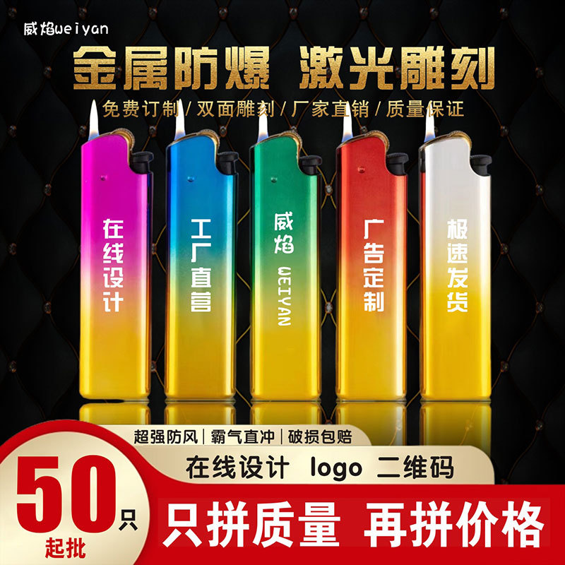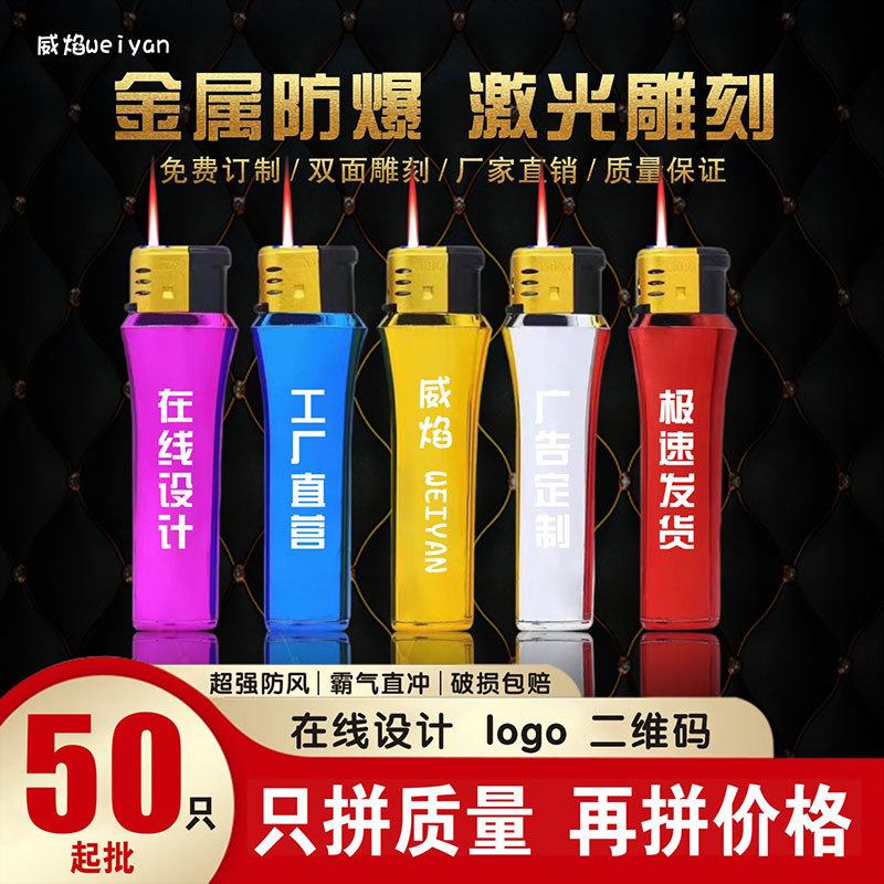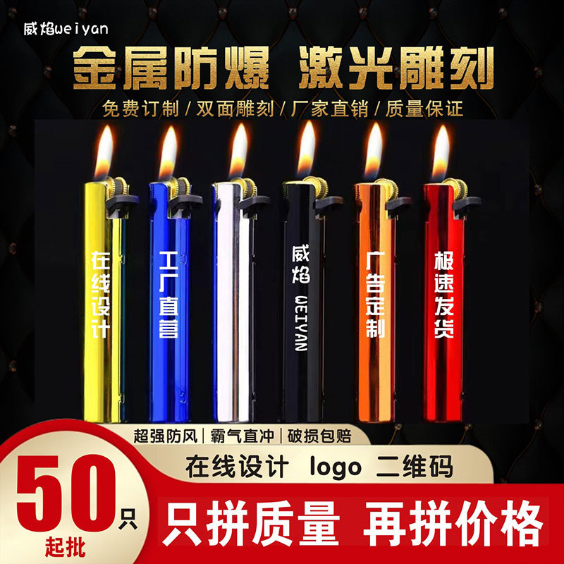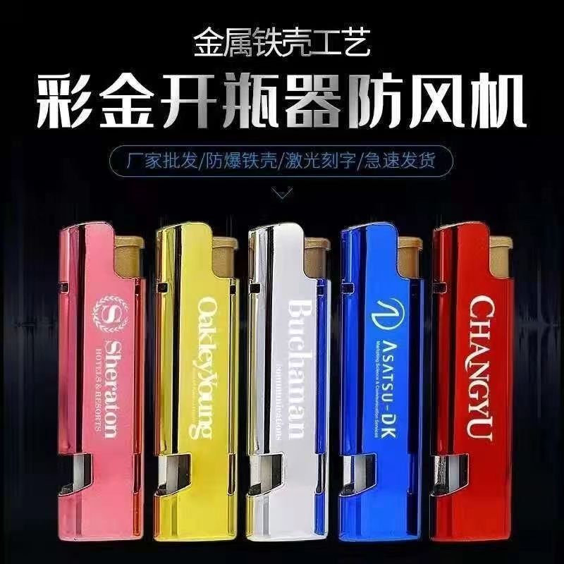 厂家批发金属防风打火机包邮广告印字雕刻明火砂轮一次性打火机