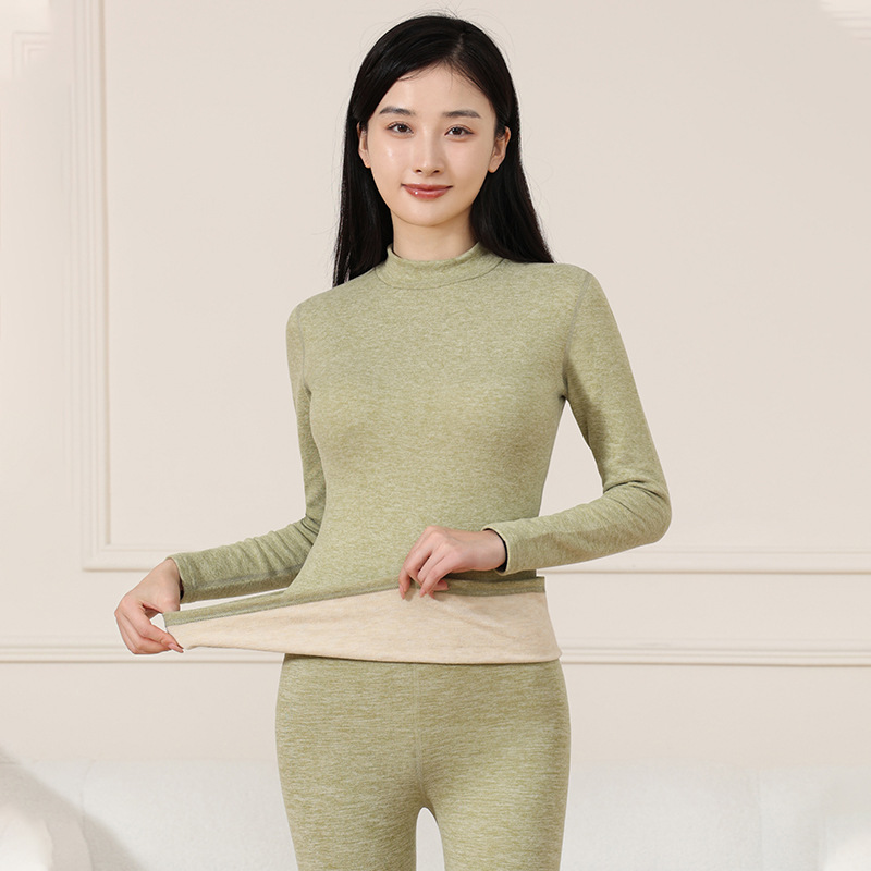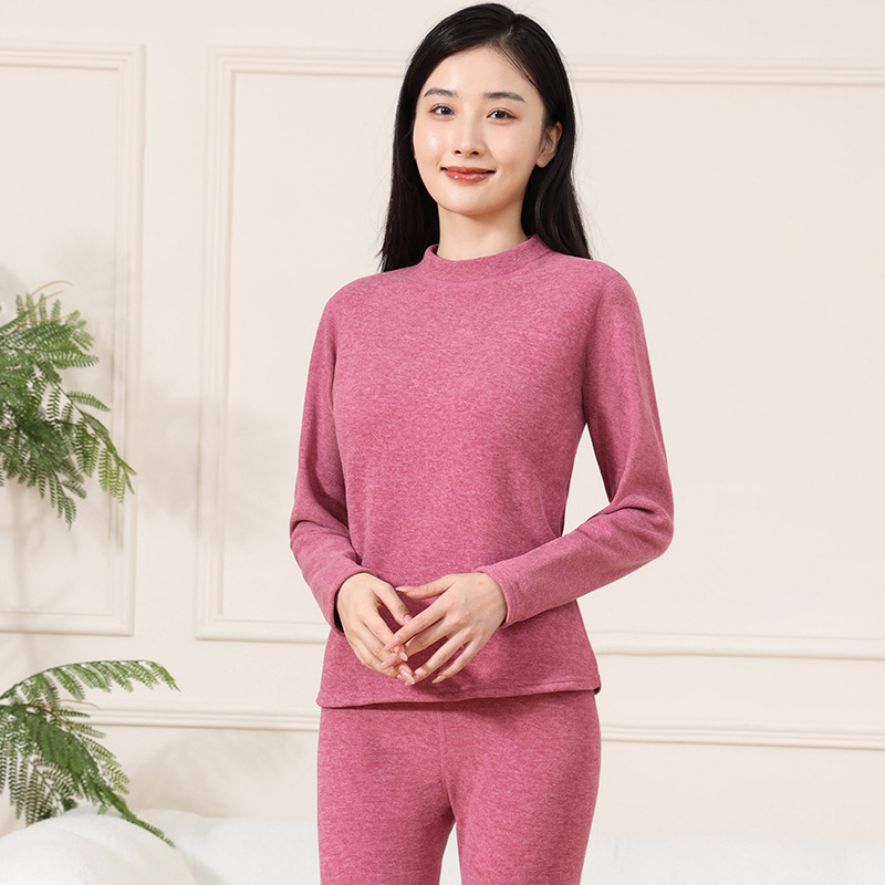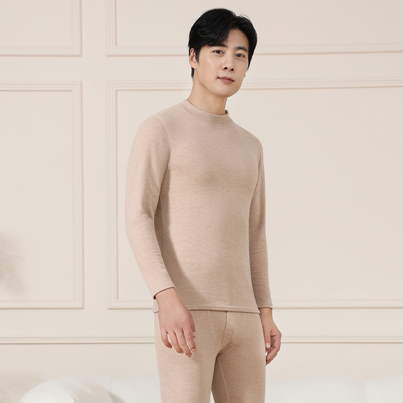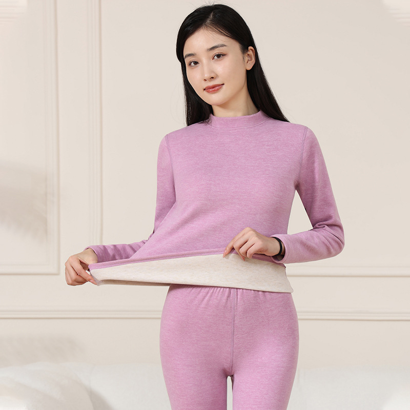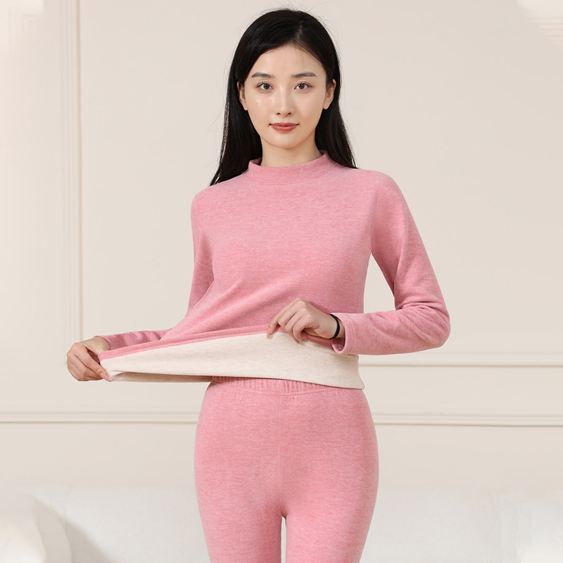 冬季情侣羊绒蚕丝秋衣秋裤套装女士保暖衣男款圆领德绒保暖内衣