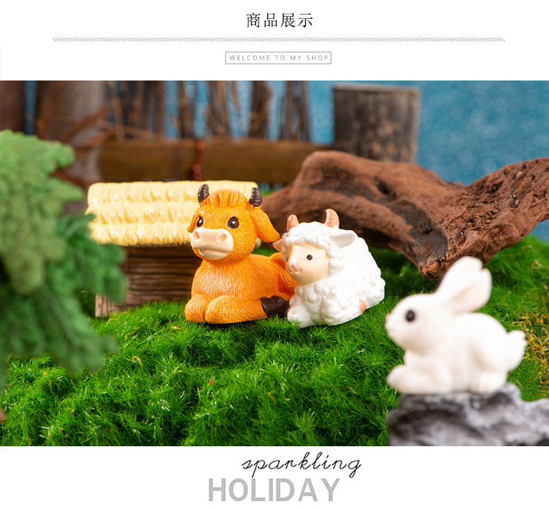 微景观树脂摆件可爱小狗小猪母鸡绵羊动物公仔摆件开心农场装饰品