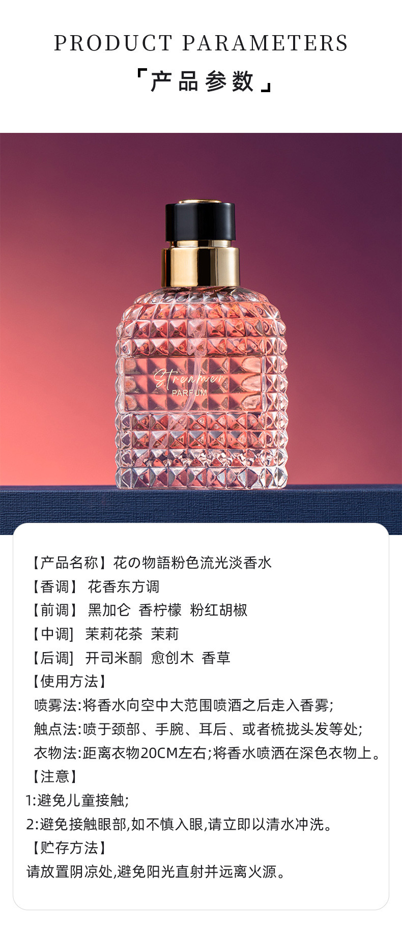 跨境西音花之物语粉色流光淡香水清新自然持久淡香抖音越南批发