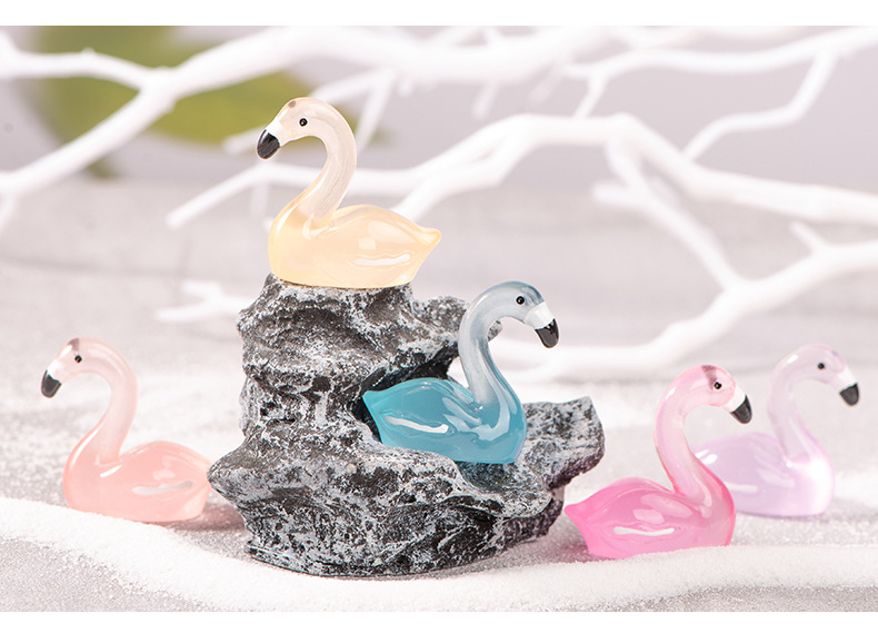 微景观摆件夜光火烈鸟树脂仿真卡通动物创意发光小摆件装饰品批发