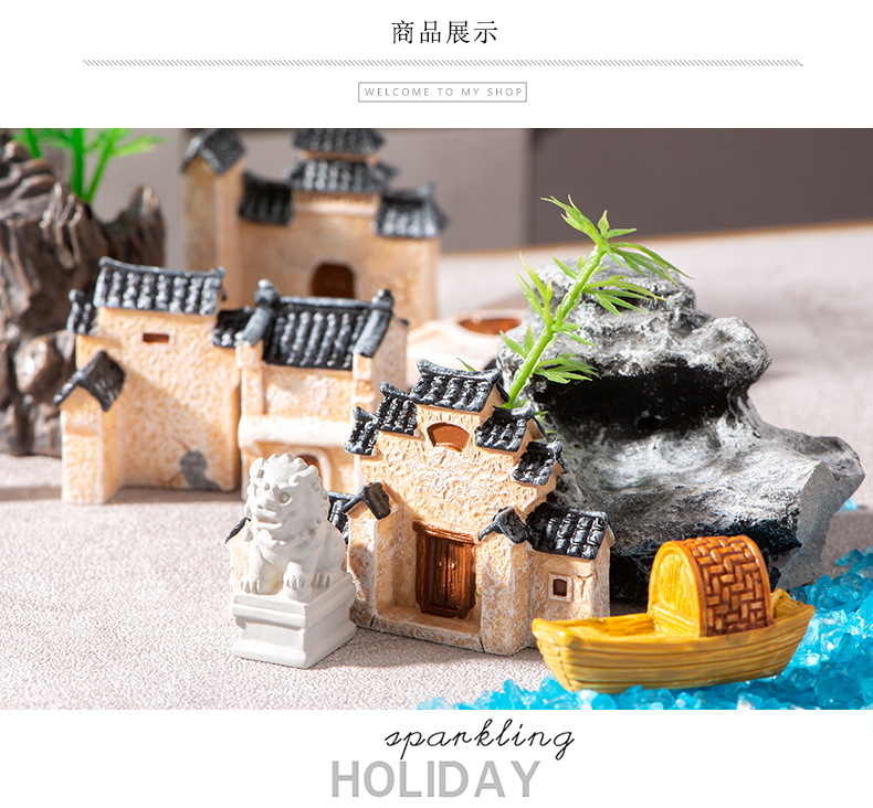 微景观小摆件中式复古江南古建筑房子模型盆景造景装饰工艺品摆件