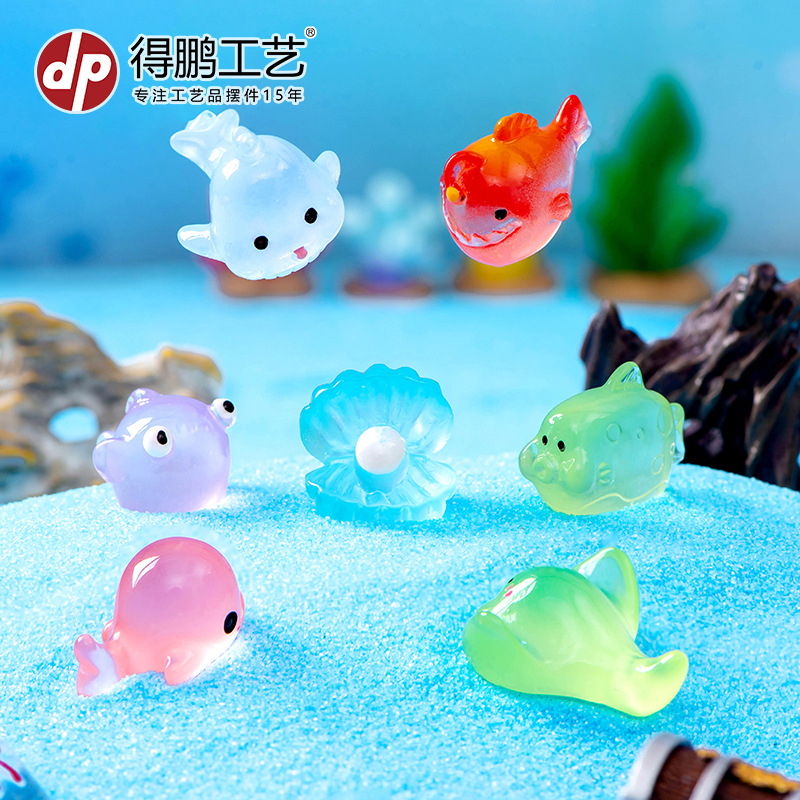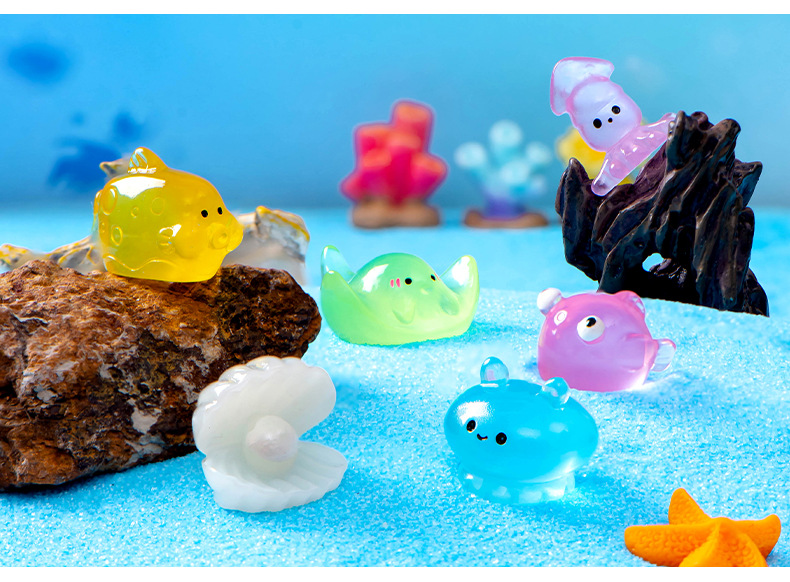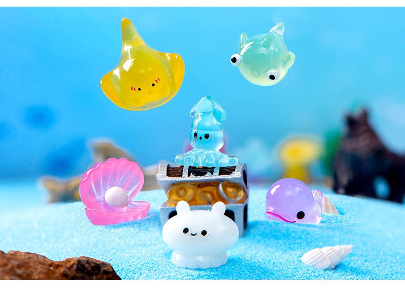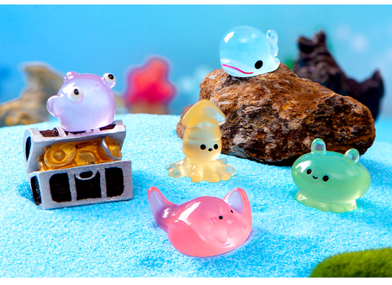微景观地中海摆件海洋动物乌贼水母海豚魔鬼鱼六角龙水族鱼缸摆件