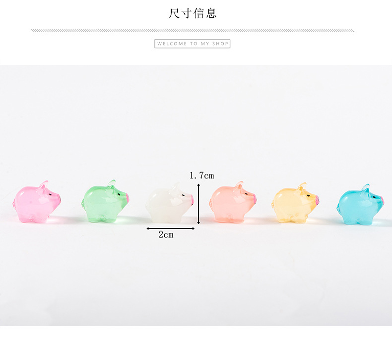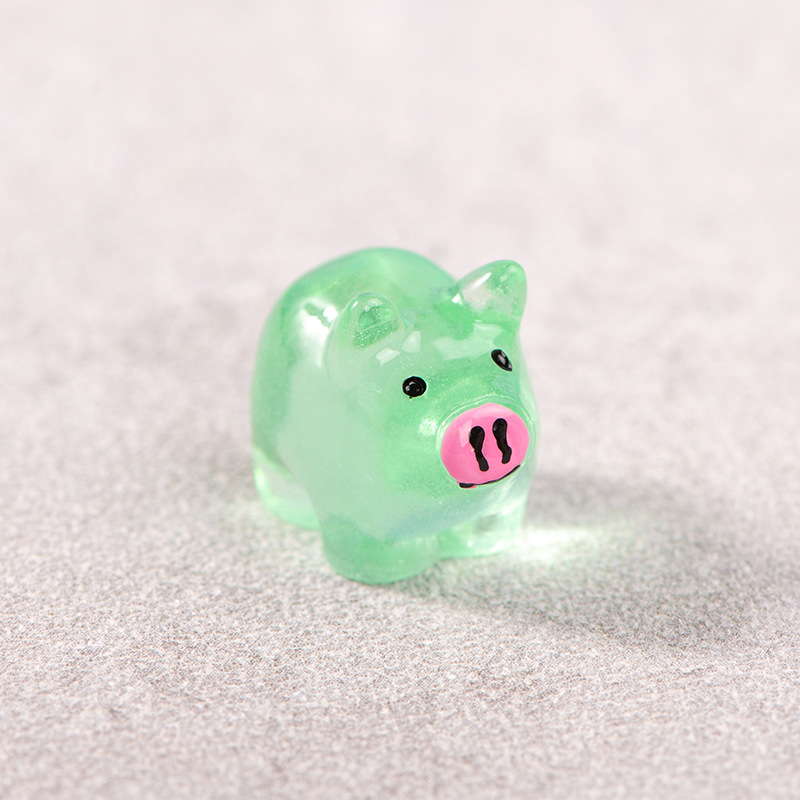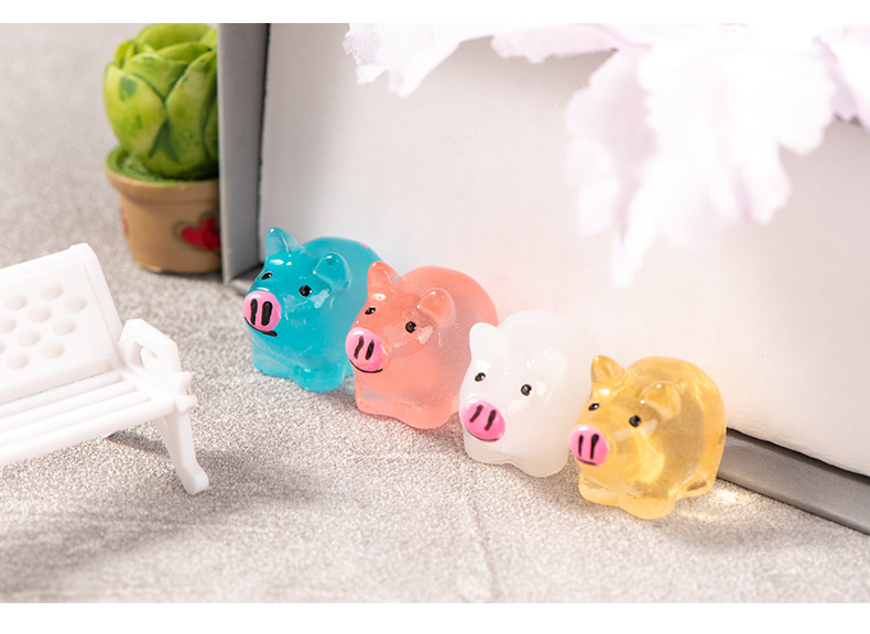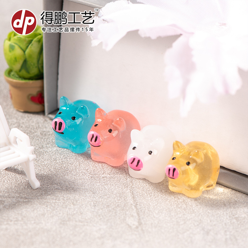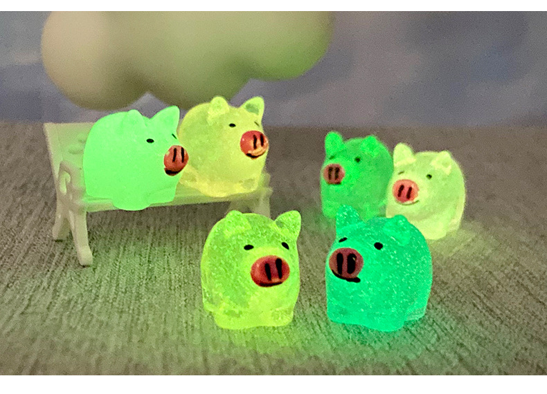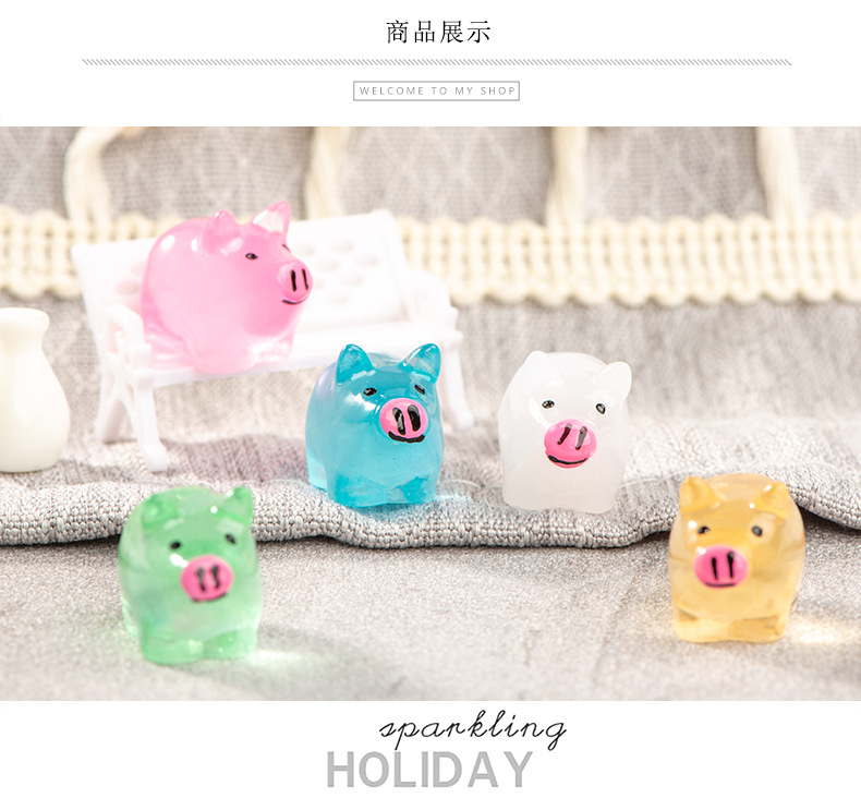 彩色夜光小猪动物摆件苔藓微景观造景装饰品桌面树脂小摆件工艺品