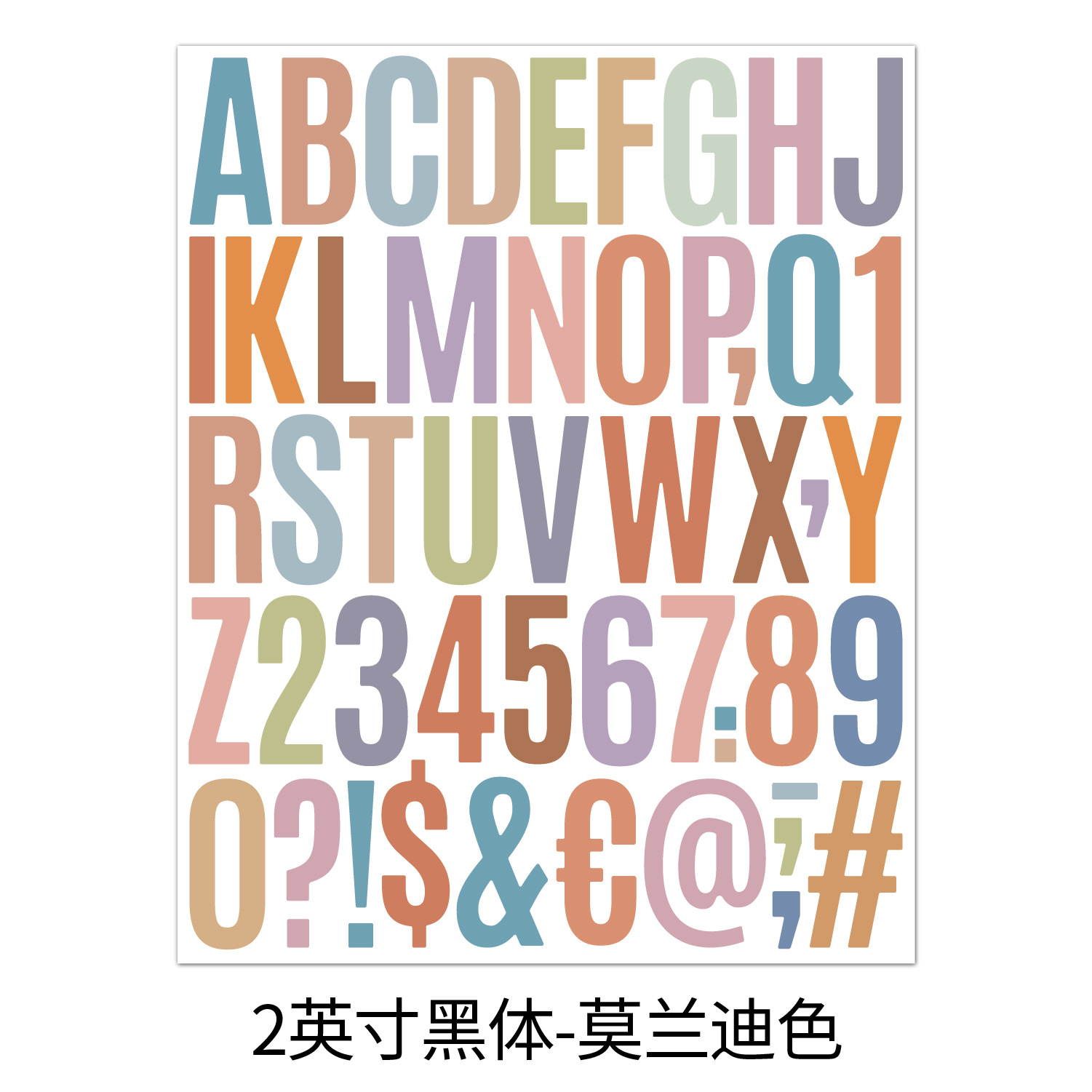 2英寸字母贴纸多色 可任意组合包装 笔记本手账装饰字母数字贴纸