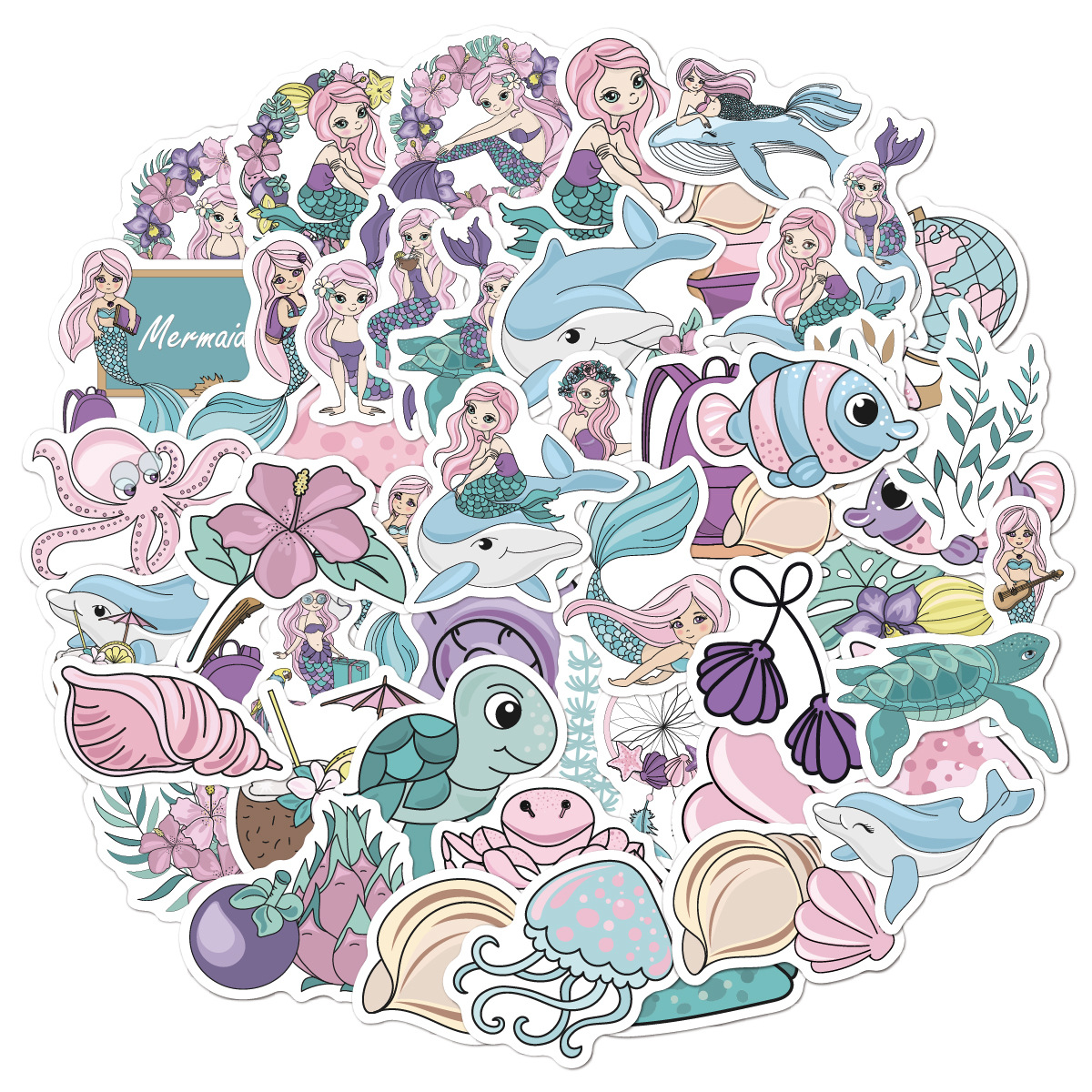 儿童卡通贴纸批发50张小美人鱼独角兽恐龙水杯文具防水儿童贴纸