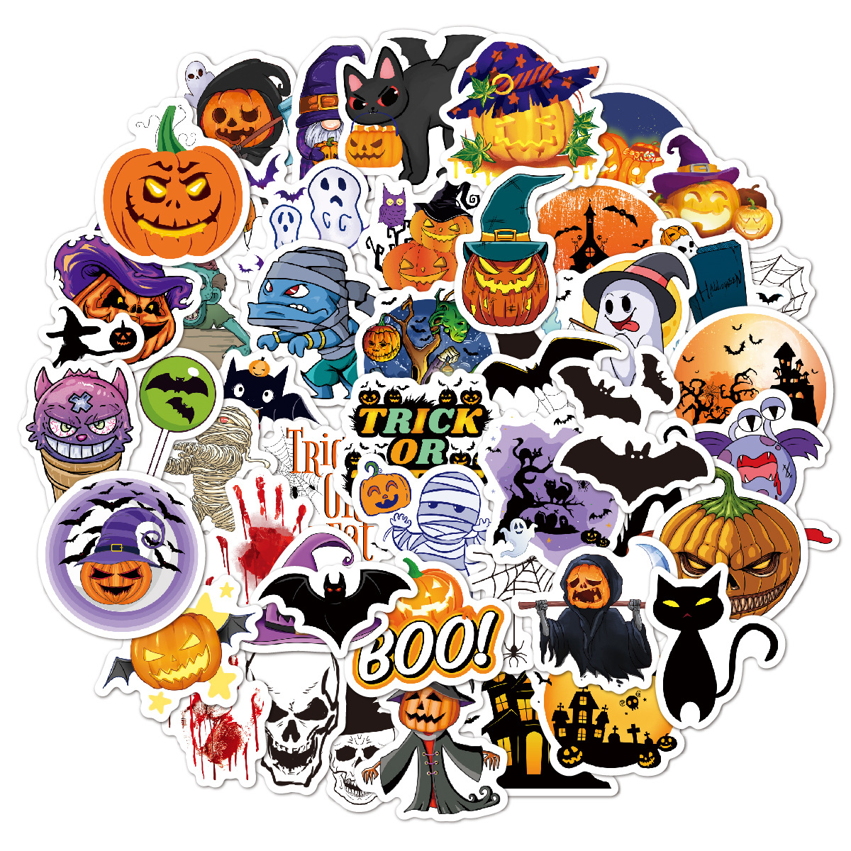 万圣节贴纸2024款全息镭射行李箱水杯节日派对装饰万圣节防水贴纸