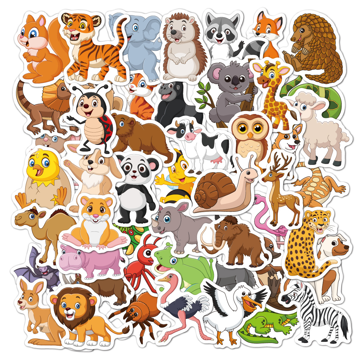 儿童卡通动物贴纸50张玩具配套装饰水杯大肚杯防水小尺寸儿童贴纸