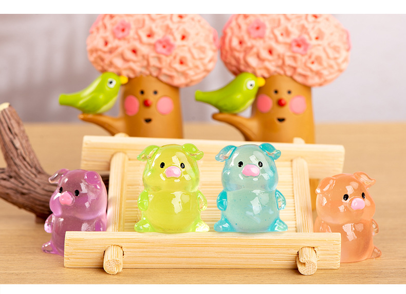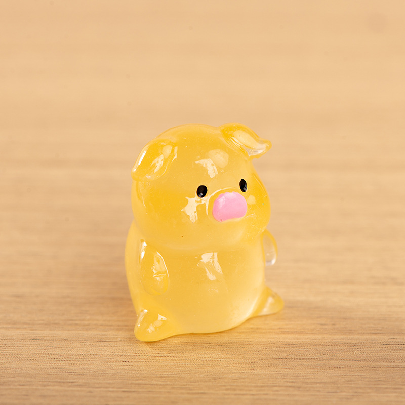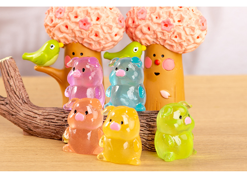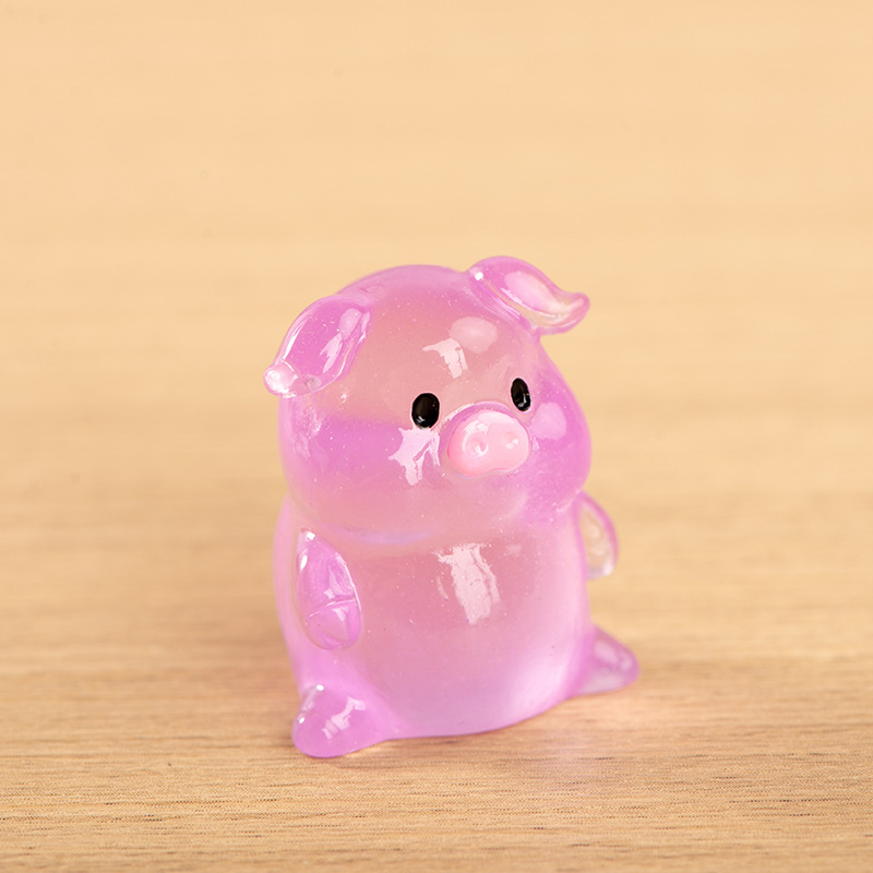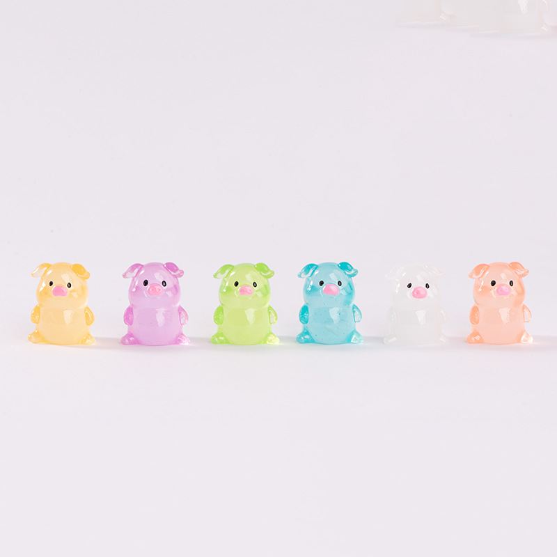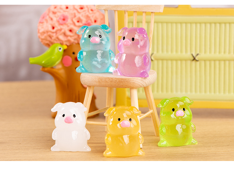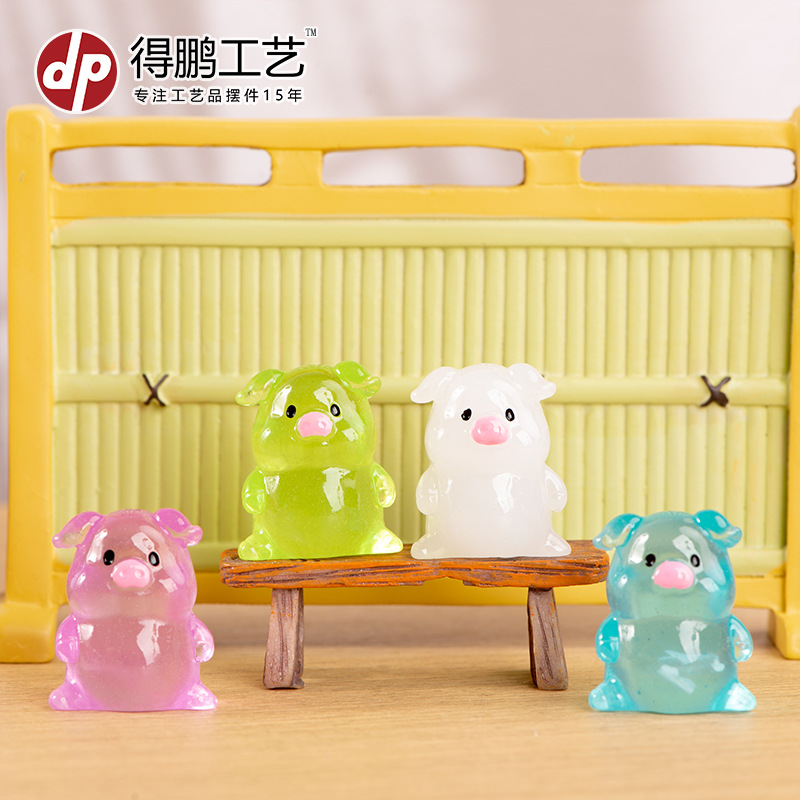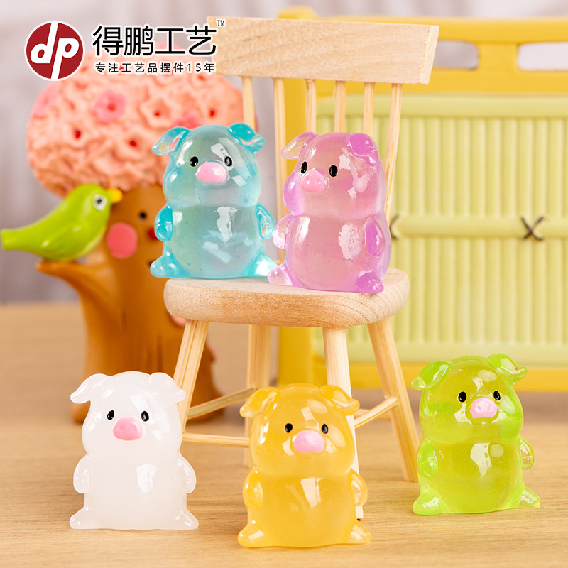 夜光树脂摆件彩色卡通可爱发光小猪立体摆件桌面车载钥匙扣装饰品