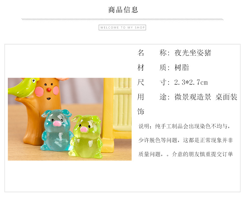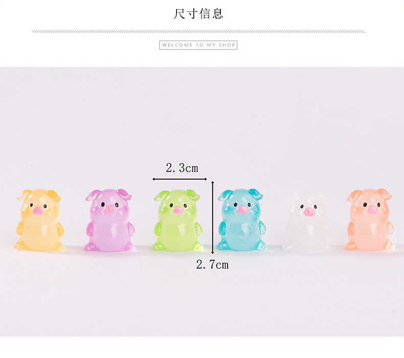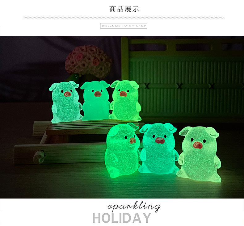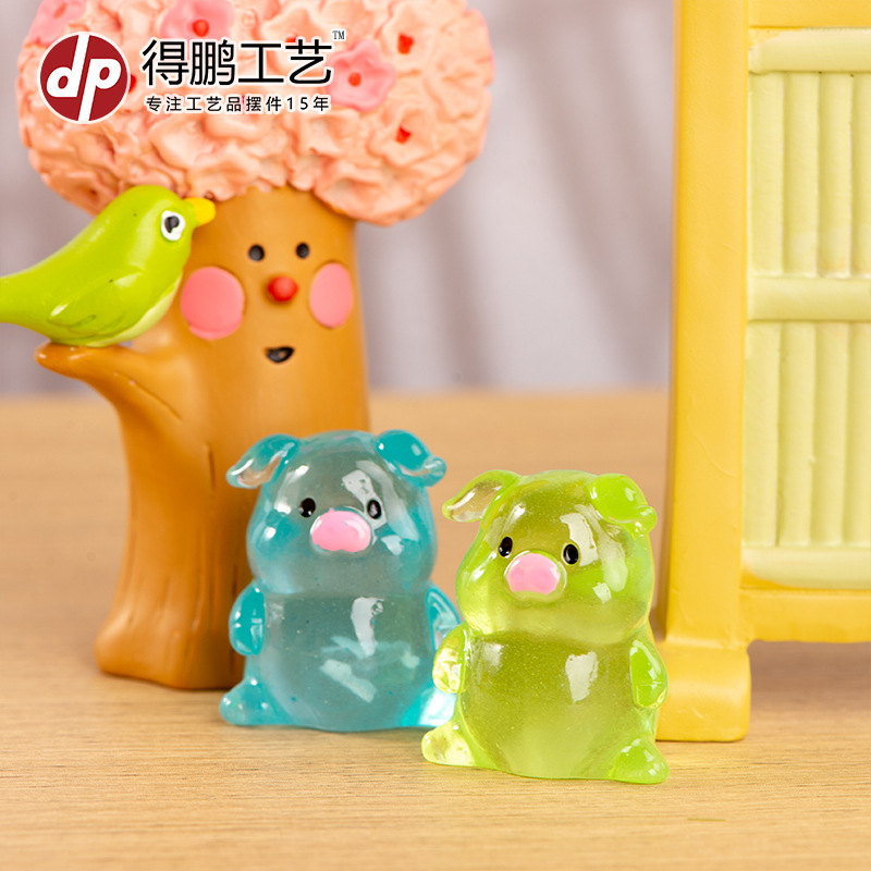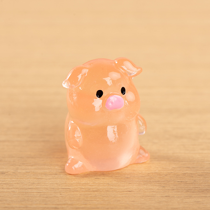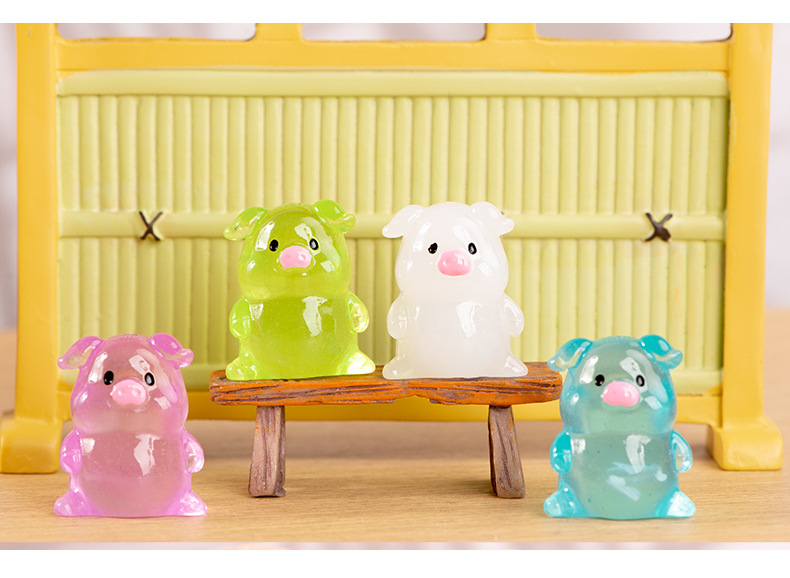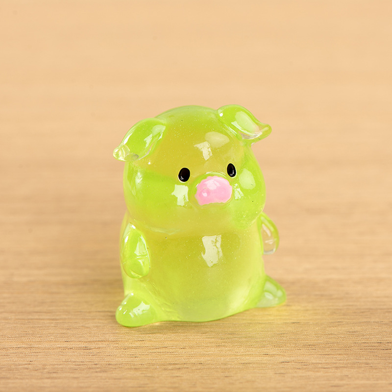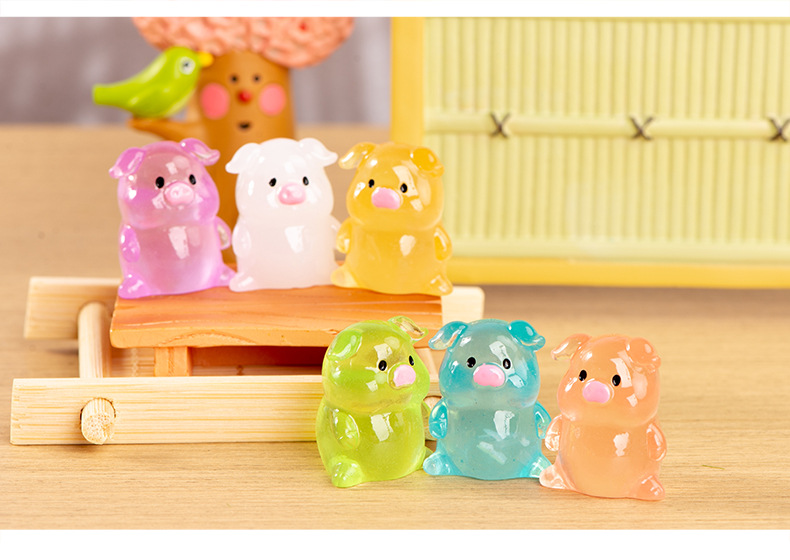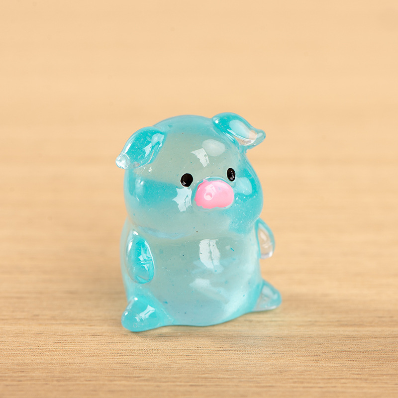 夜光树脂摆件彩色卡通可爱发光小猪立体摆件桌面车载钥匙扣装饰品