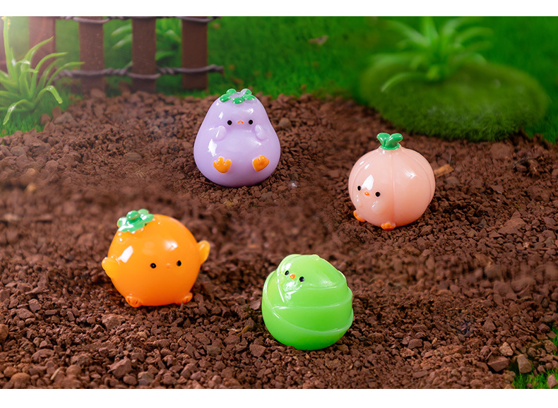 微景观摆件可爱蘑菇萝卜茄子洋葱蔬菜小鸭树脂摆件桌面汽车装饰品