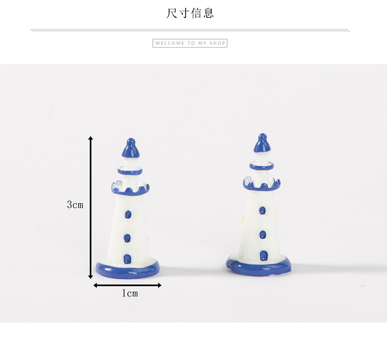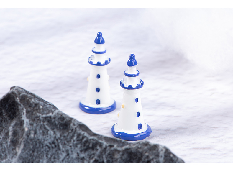 微景观生态瓶装饰小摆件白色蓝边灯塔水族鱼缸树脂工艺品厂家批发