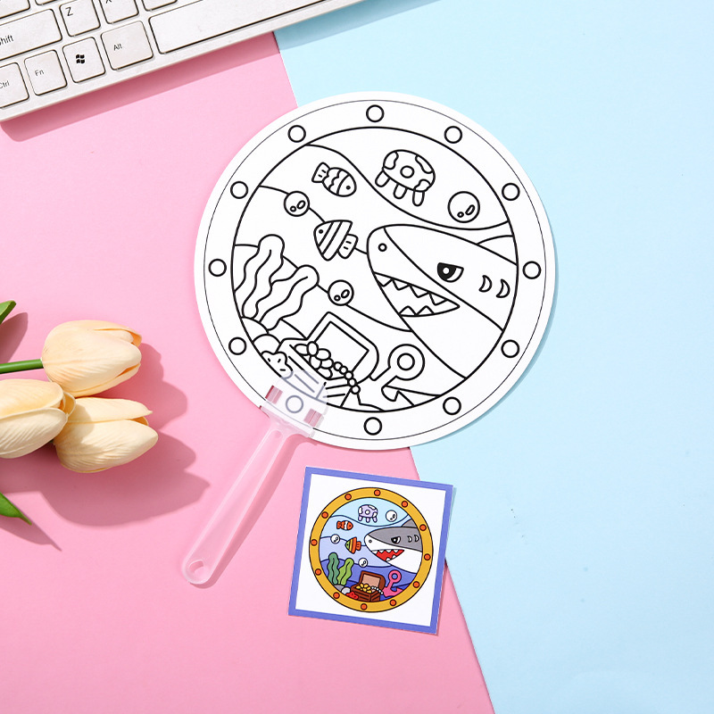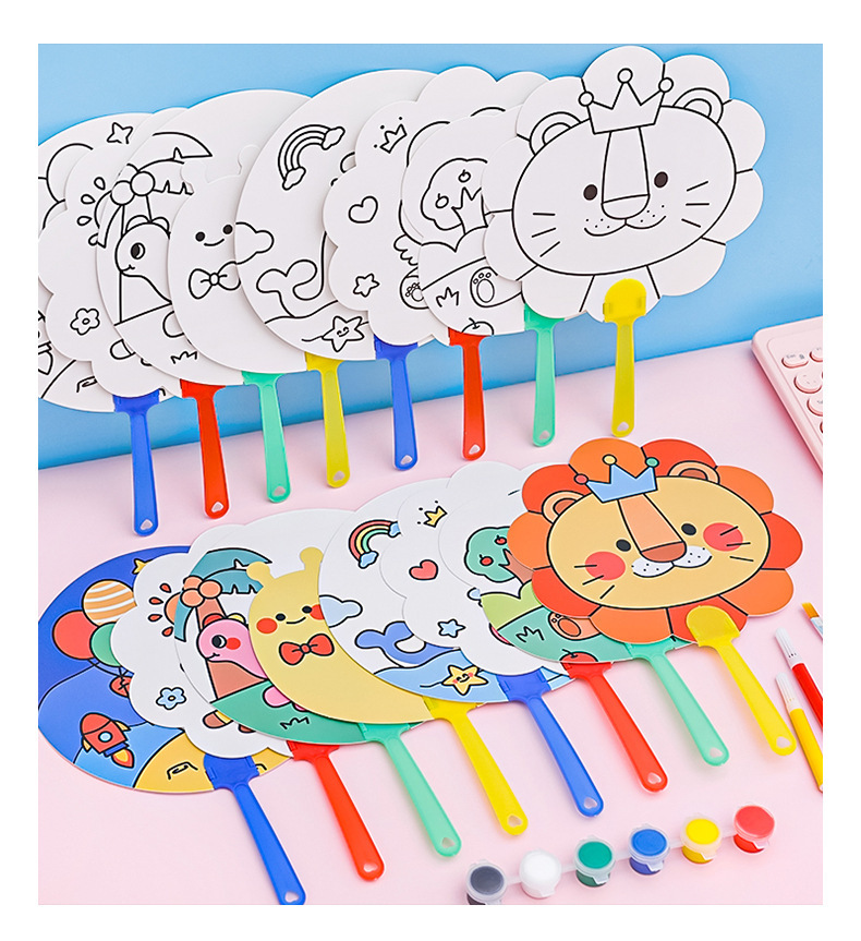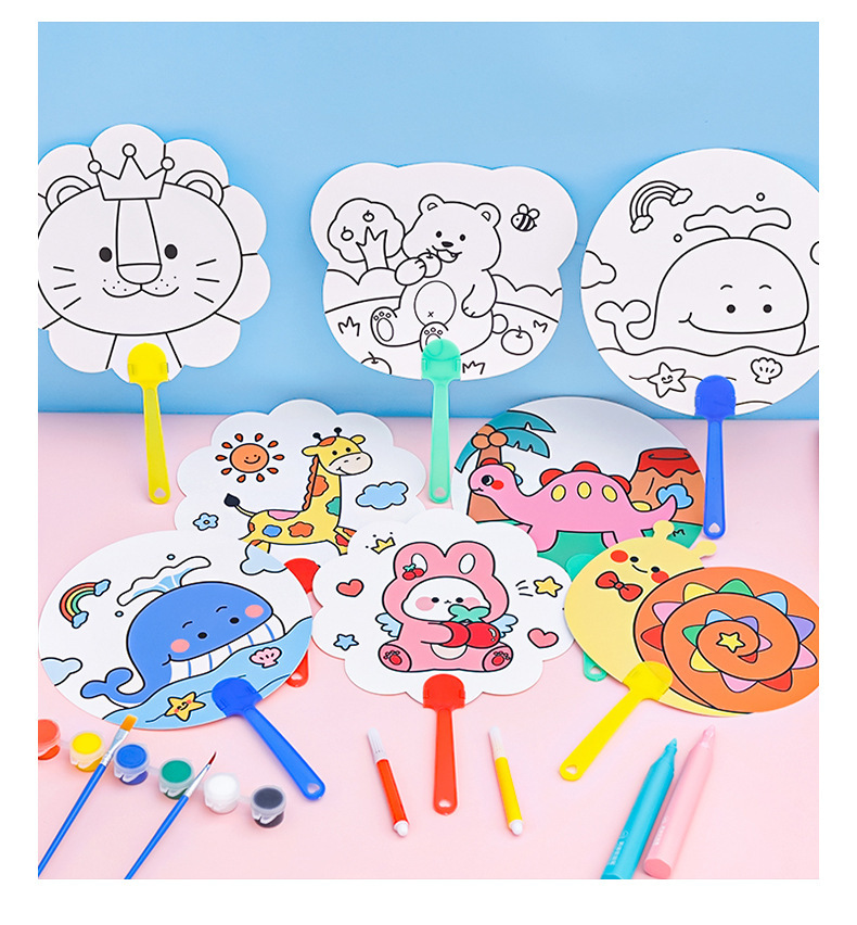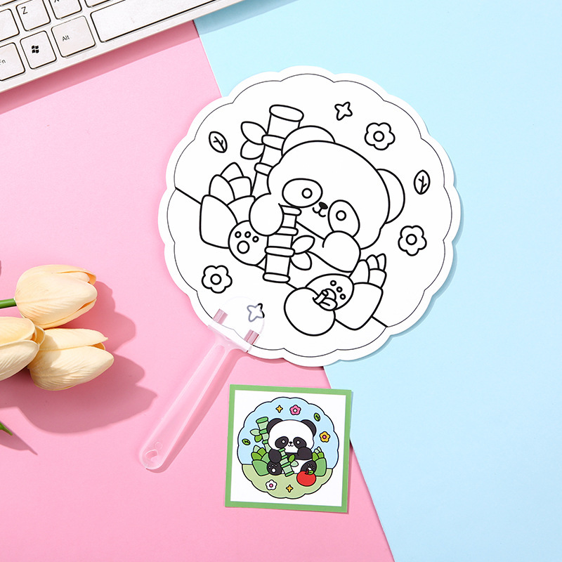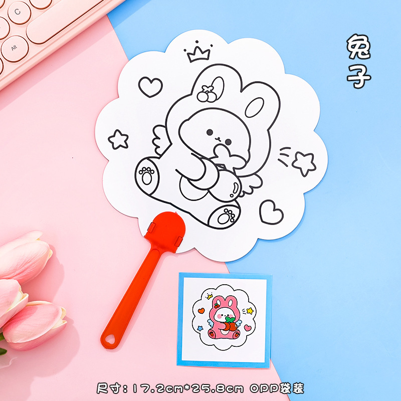 可爱卡通儿童礼物团扇diy涂鸦彩绘扇益智小礼品学生用手工填色扇