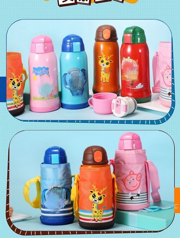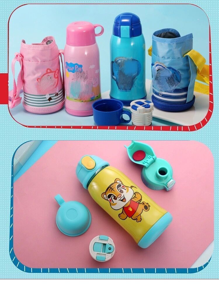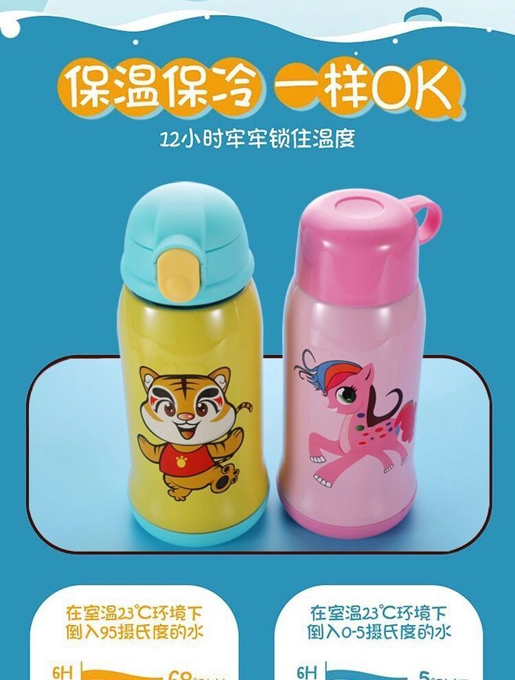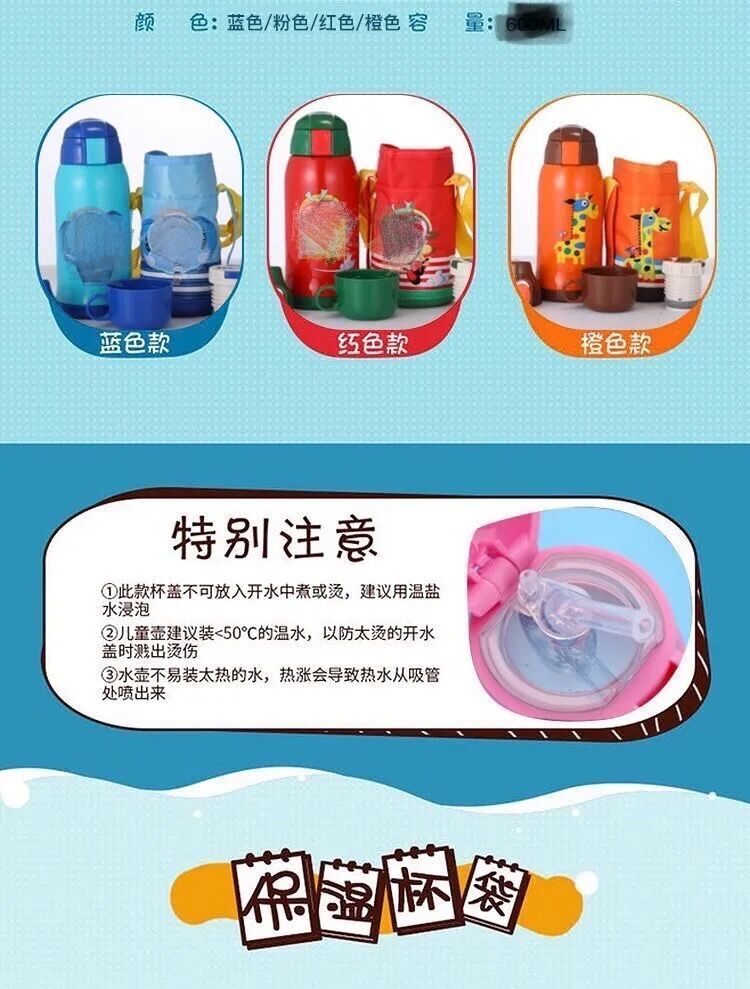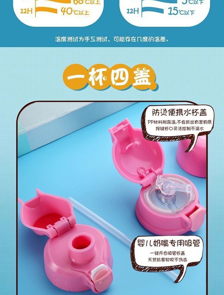 防摔三盖304不锈钢儿童保温杯套男女可爱保温水杯带吸管学生杯子