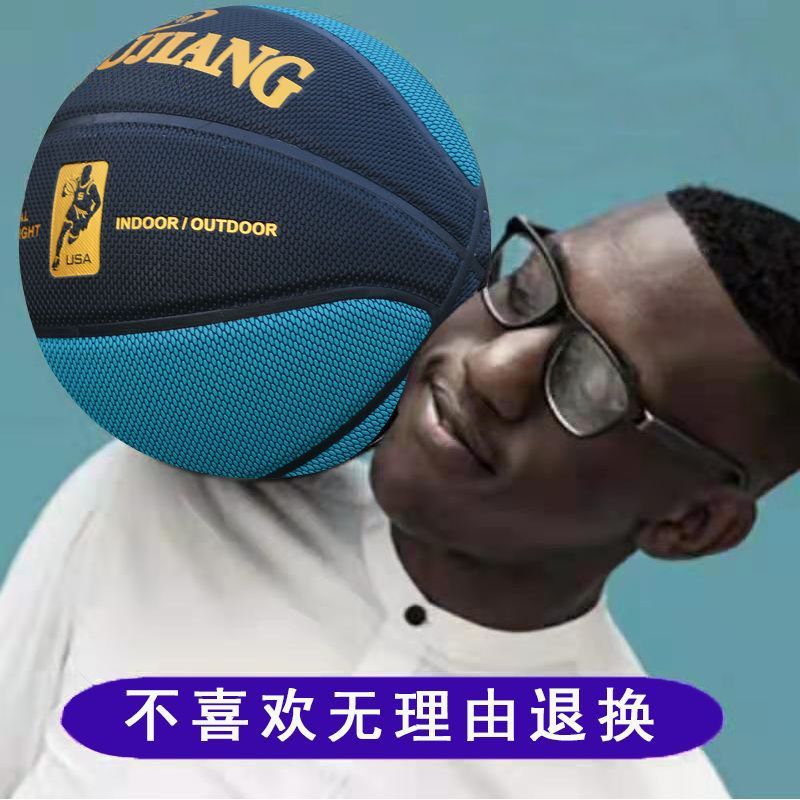 正版成人7号篮球水泥地耐磨室外真皮手感5号儿童小学生比赛蓝球