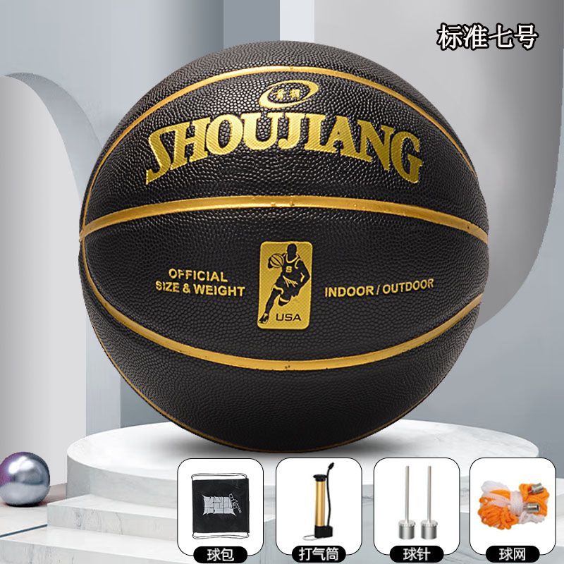 | wear-resistant no. style 7 basketball (thick soft leather) black golden edge(耐磨款7号篮球(加厚软皮)黑色金边) | USD $13.12 | 99998 piece available |