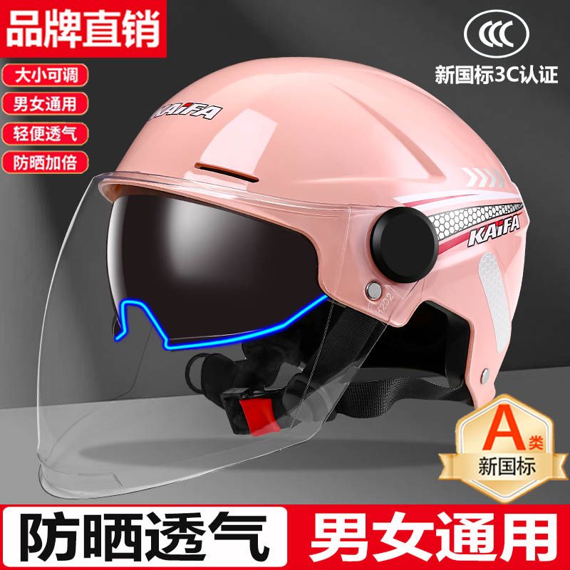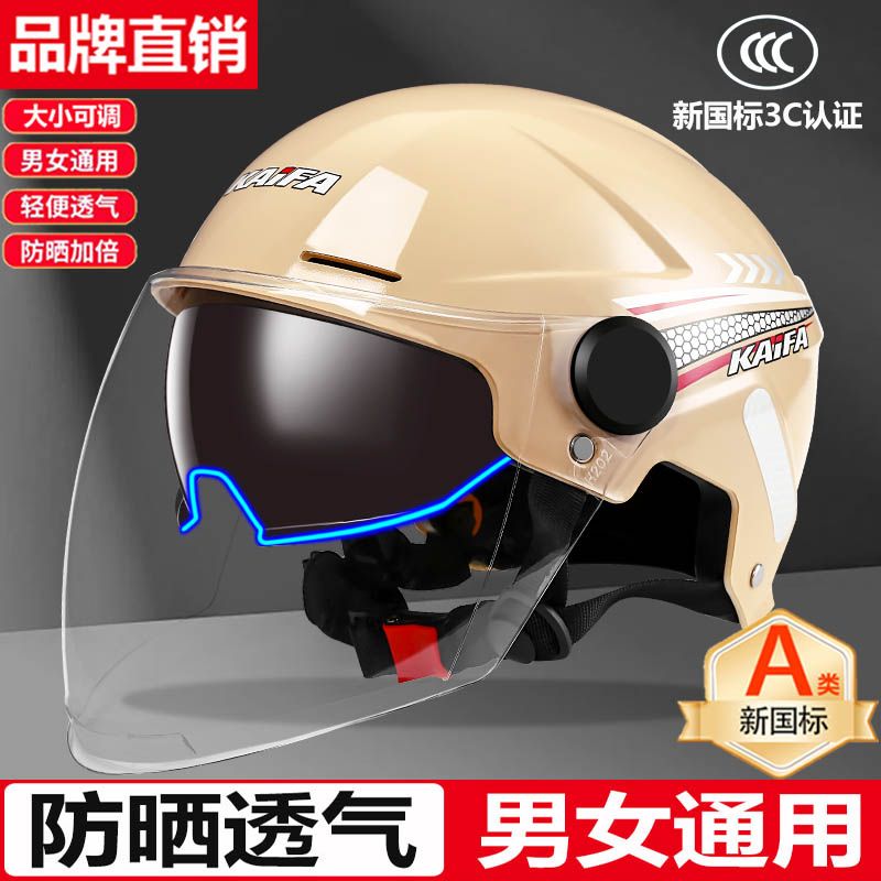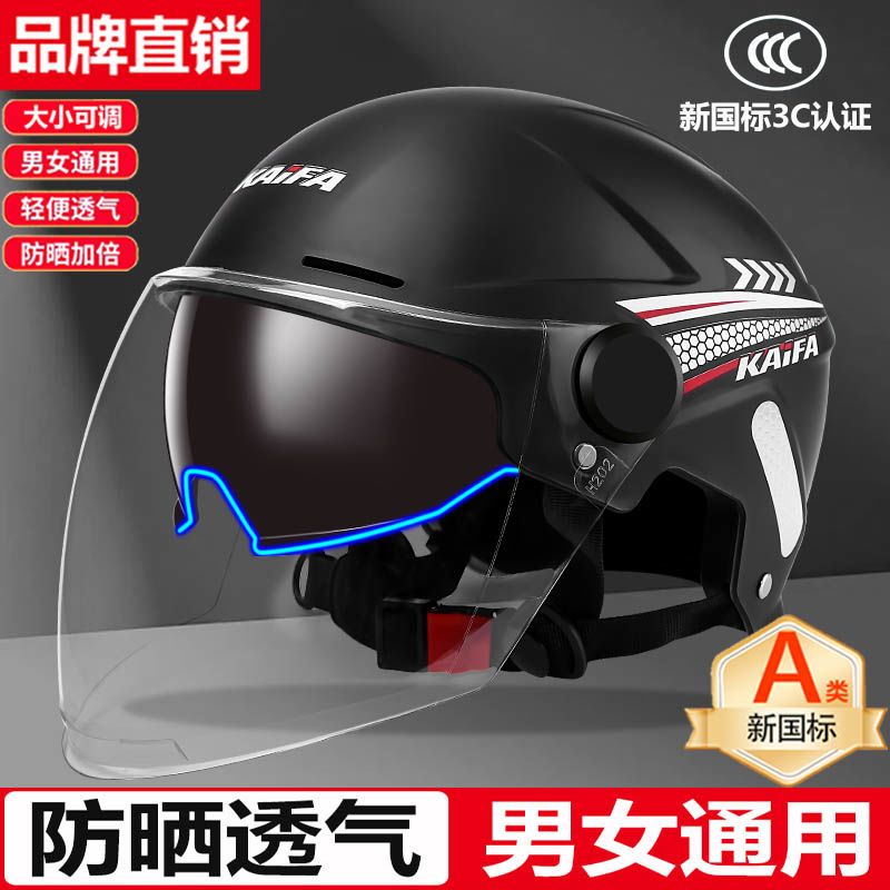 夏季新款双镜3C头盔电动车男女摩托电瓶车半盔防晒透气四季安全帽
