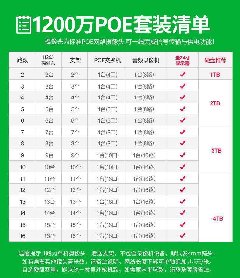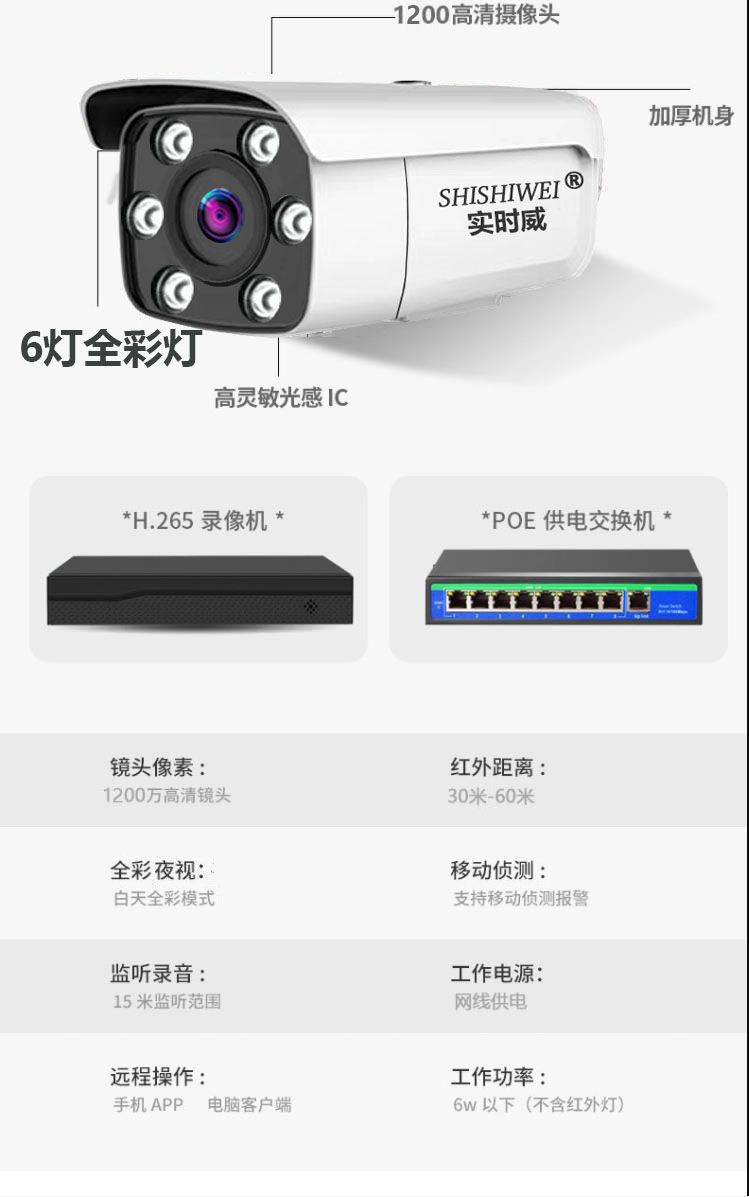 监控器高清套装设备家用店铺商用POE室外摄像头无死角手机远程