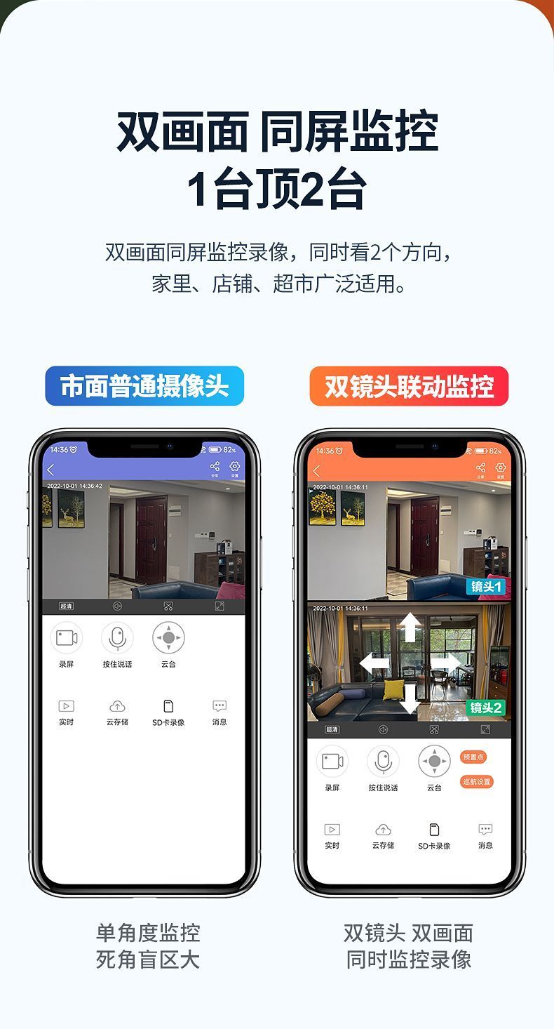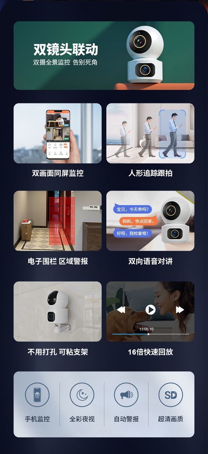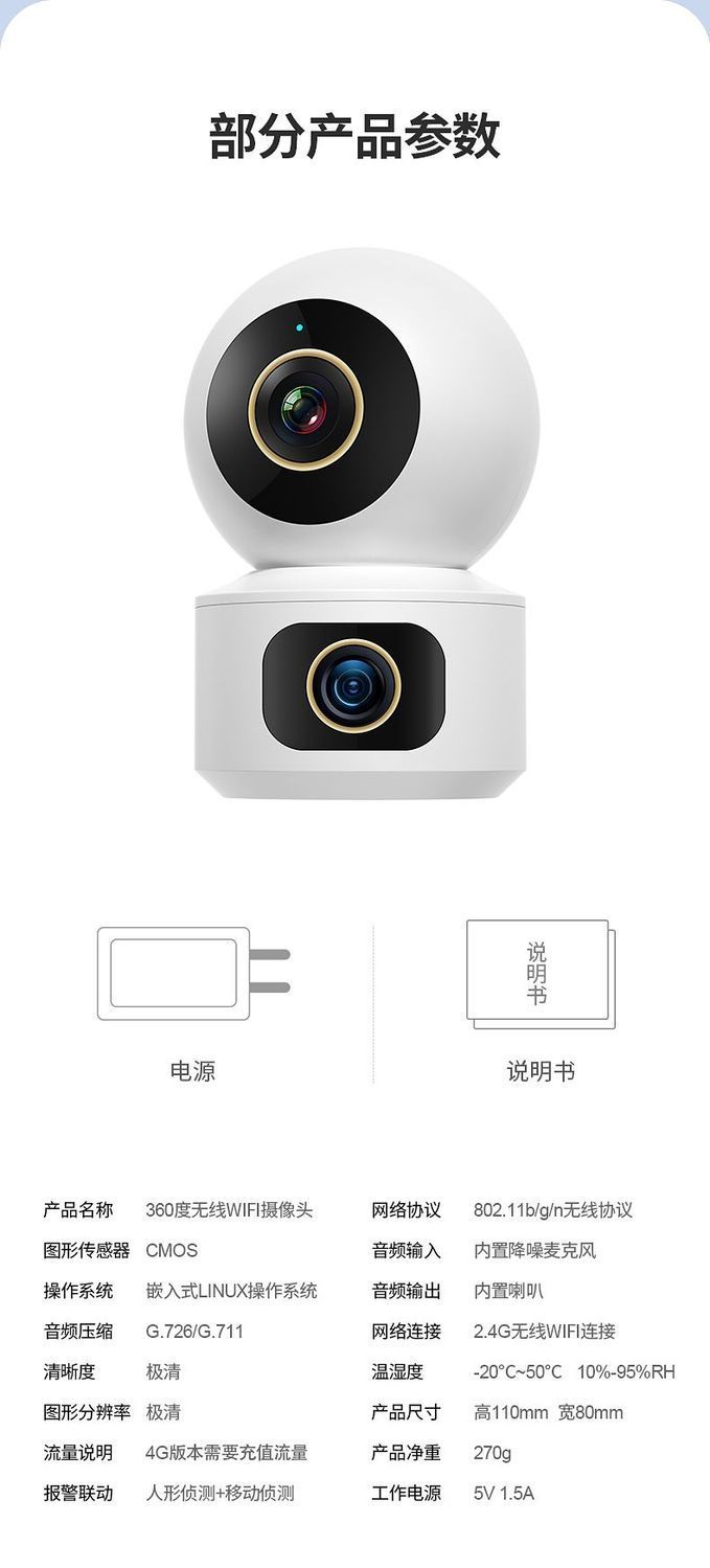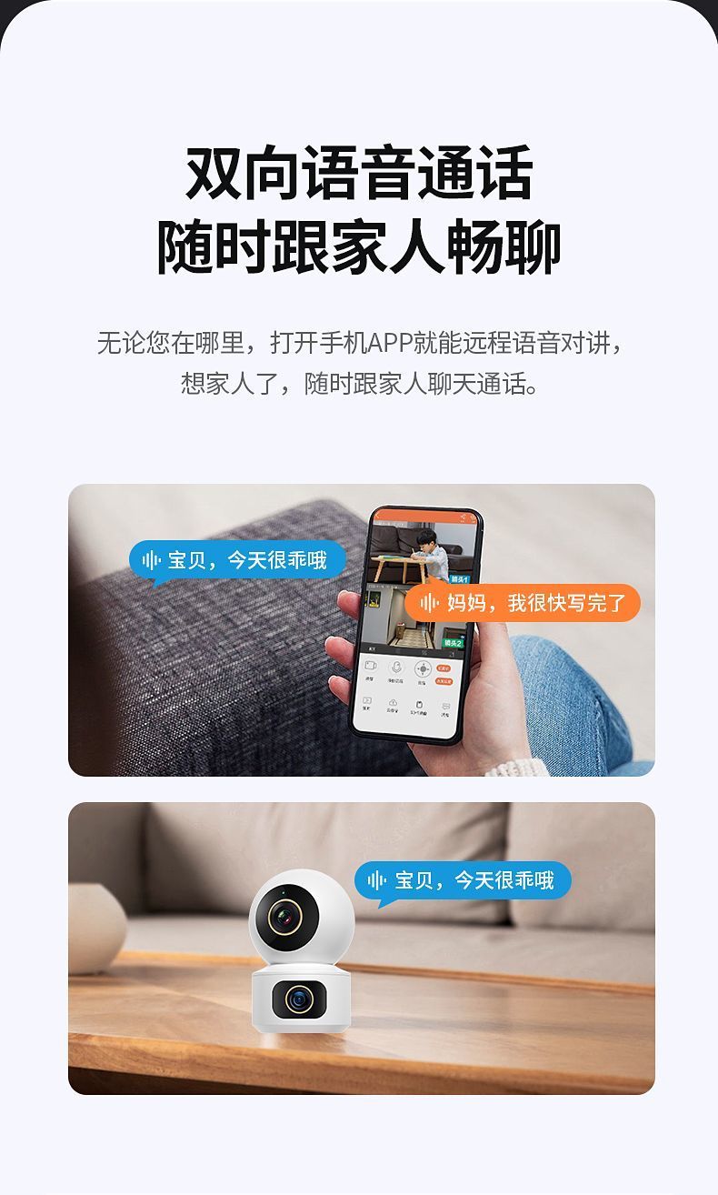 小米米家APP双镜头无线wifi摄像头家用监控室内360度高清5g可对讲