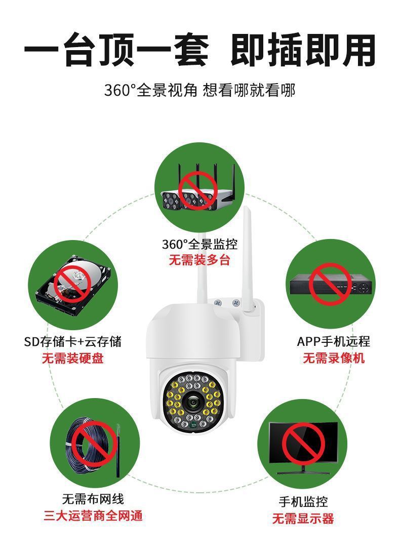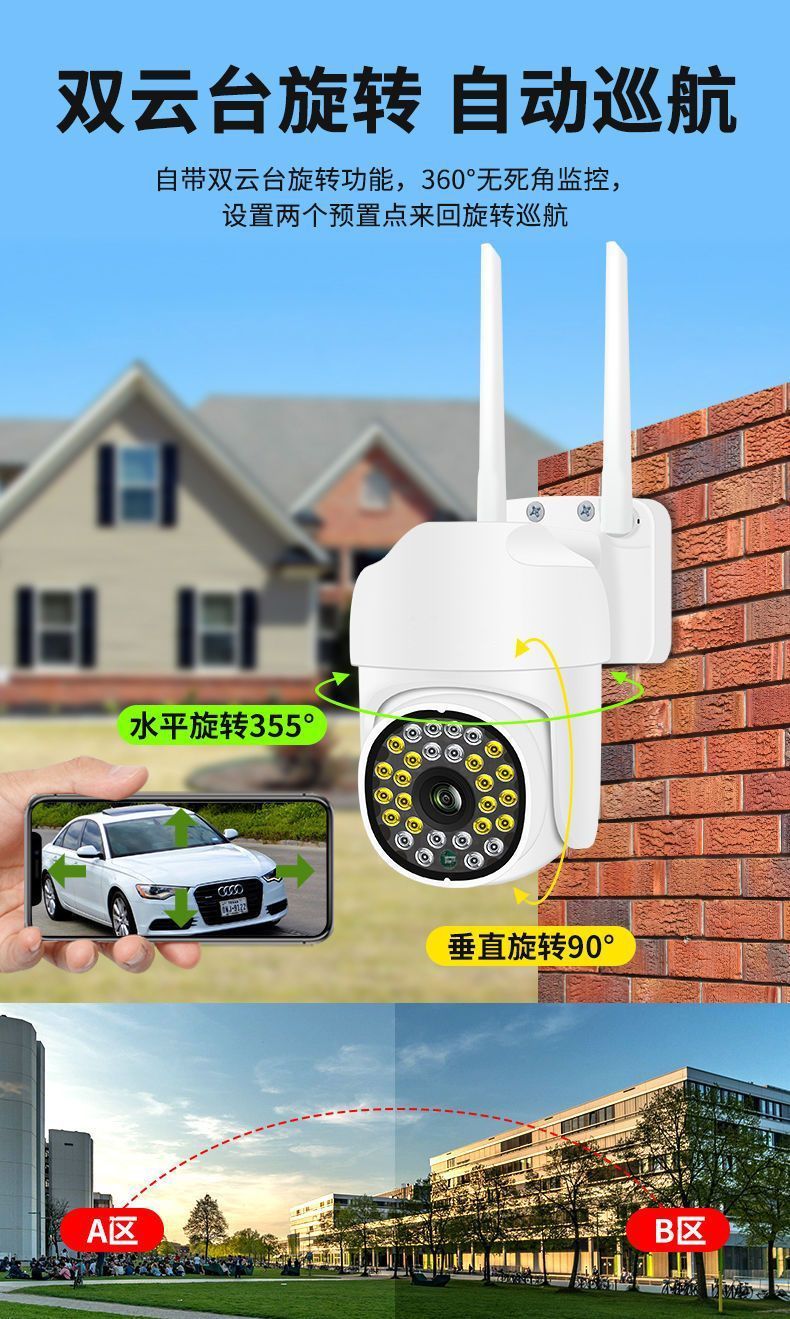 摄像头监控家用360度全景wifi室外智能高清夜视可视对讲手机远程