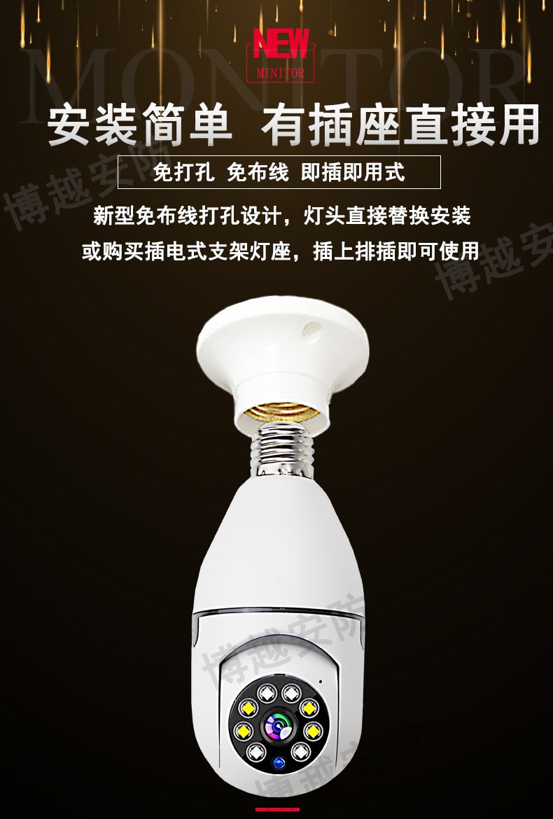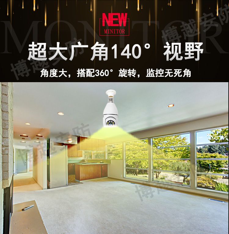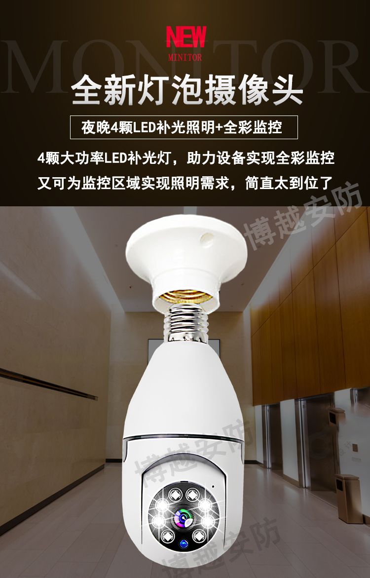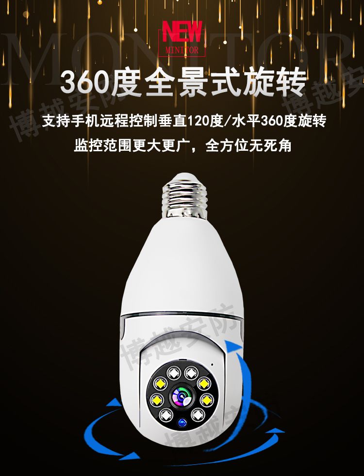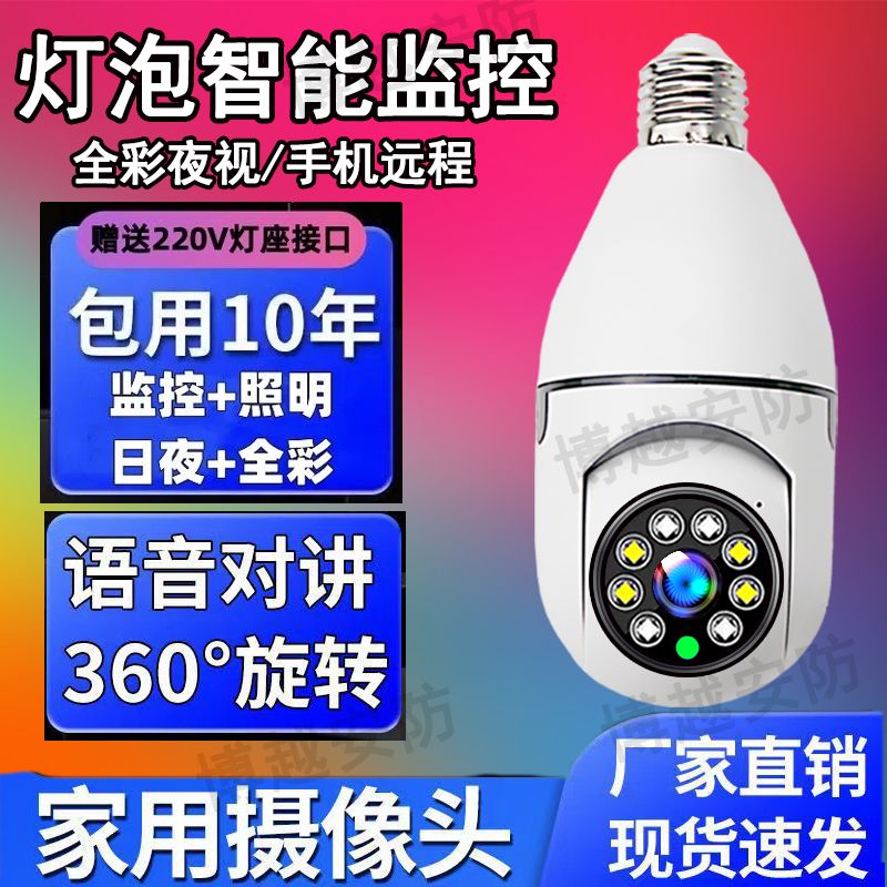 【选无线】灯头安装监控器摄像头360度手机远程家用外用防水