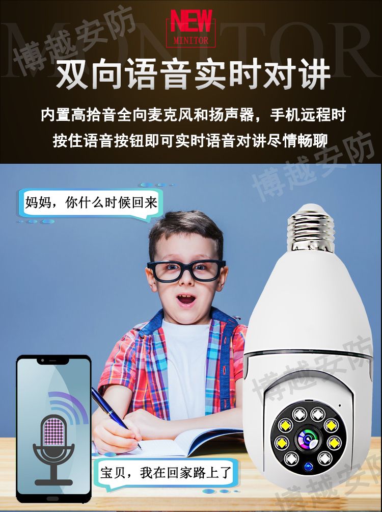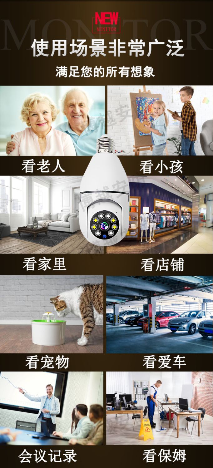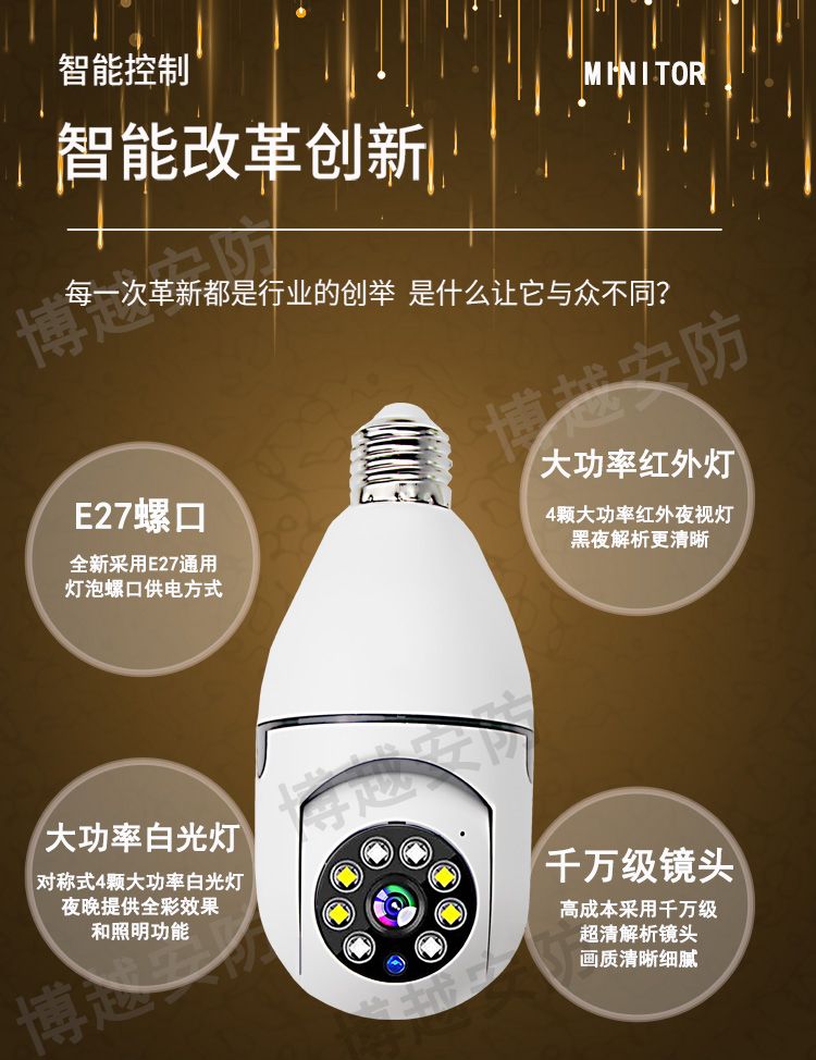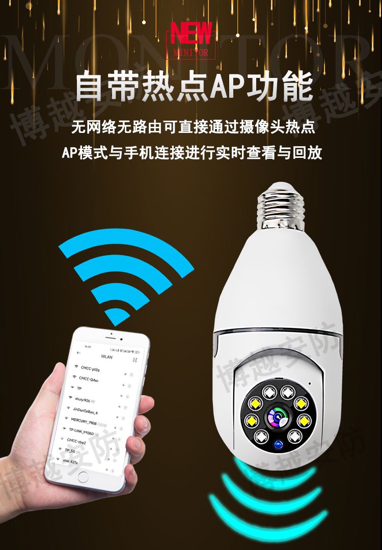 【选无线】灯头安装监控器摄像头360度手机远程家用外用防水