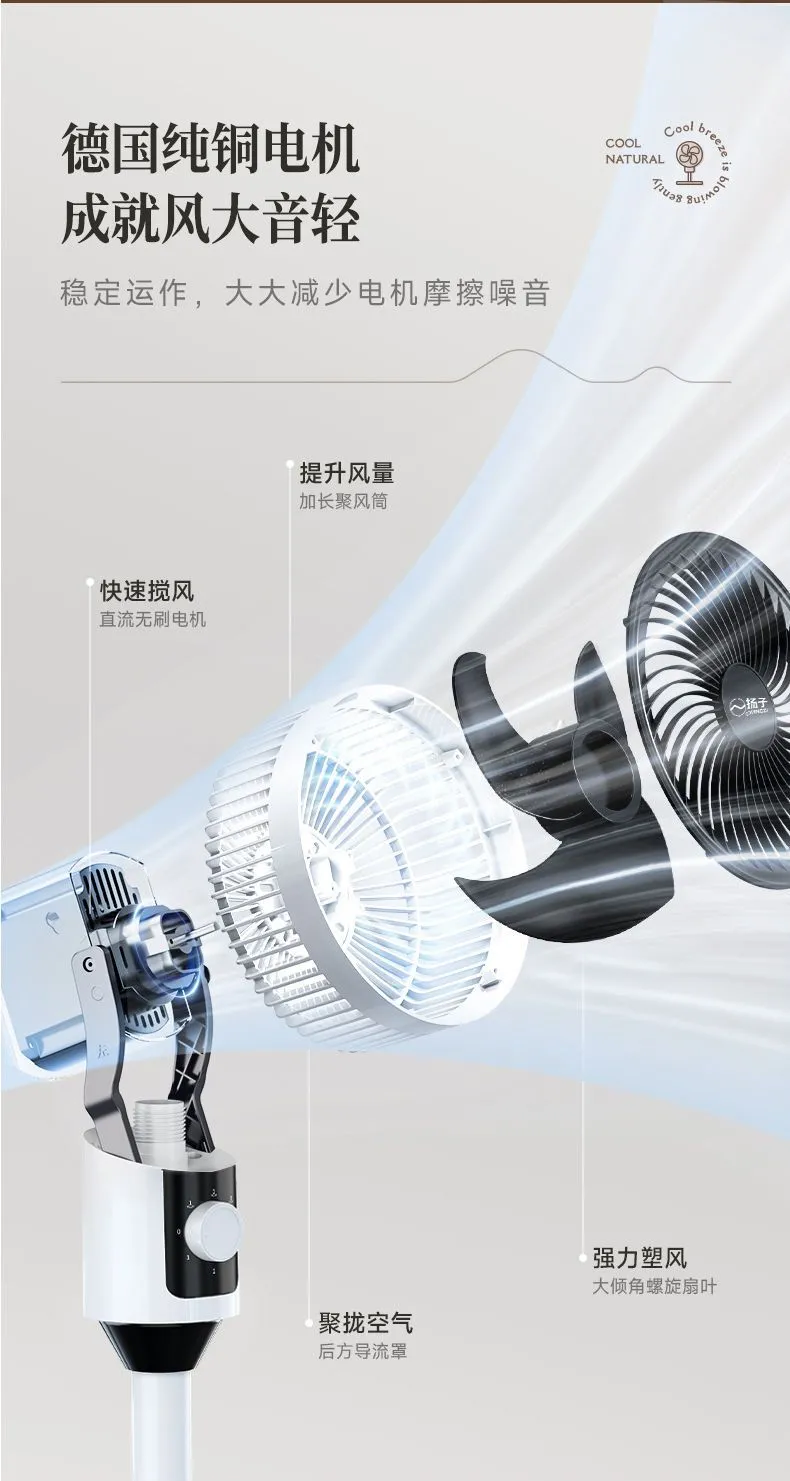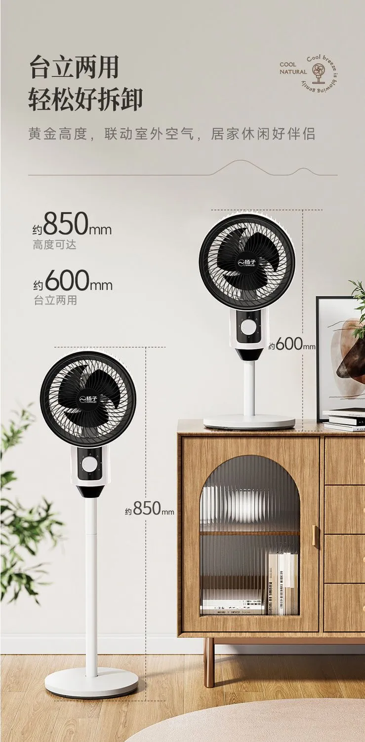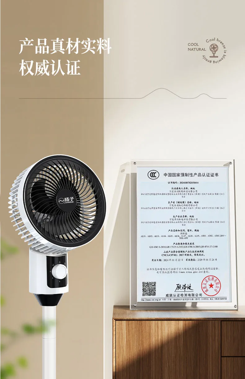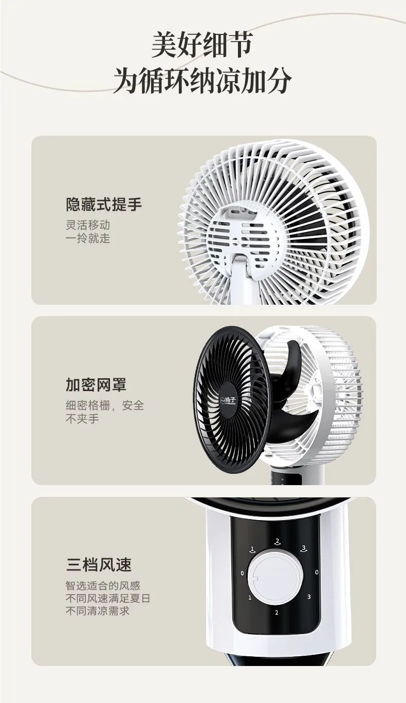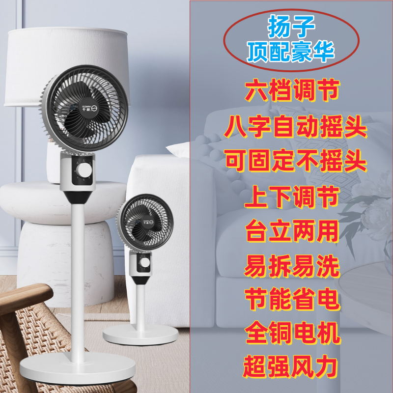 扬子空气循环风扇落地扇家用立式摇头涡轮风力节能电风扇静音