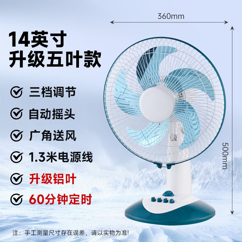 电风扇家用台扇大风力台式12寸16寸小型学生宿舍静音摇头电扇床上