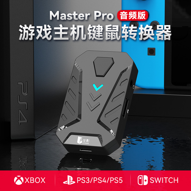 佳影Master Pro音频版主机王座键鼠转换器,兼容PS3,PS4,PS5, XBox360, XBoxONE,XBox Series,Switch主机,有线链接,即插即玩,3.5MM耳机口音频输出,Turbo连发功能,支持自定义按键